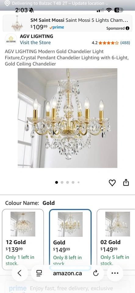 Buy & SellAGV Lighting Modern Gold Crystal Pendant Chandelier Light FixturAGV Lighting Modern Gold Crystal Pendant Chandelier Light Fixtur$80Brand new, never opened in the box. You'll be saving money compared to the retail price.ConditionNewWHERE TO MEETCheck LocationView MapSELLERverifiedKathrynBeamsville650 reviews0 chats·0 favorites·2 viewsSEND CHAT TO SELLERHi Kathryn! I’m interested in your listing.Hi Kathryn! I’m interested in your listing.Get the Karrot app to chatSign In to chat