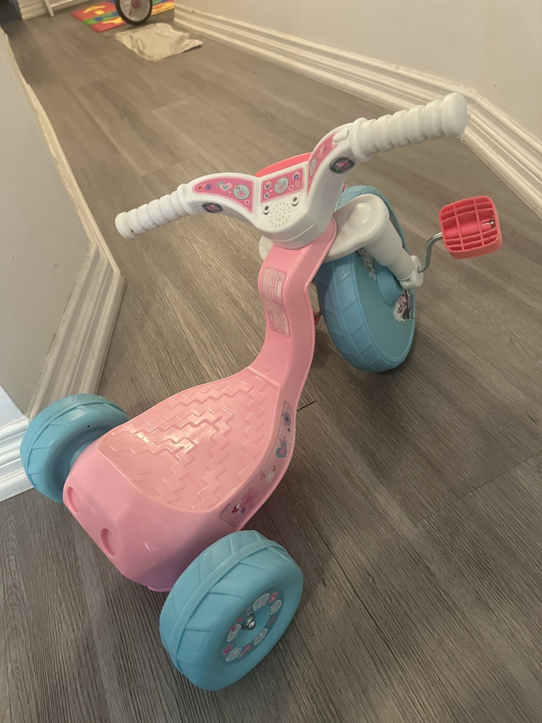 Selling a cute pink and blue tricycle for kids! It's in great shape and ready for a new home. Perfect for little ones learning to ride and explore the neighbourhood