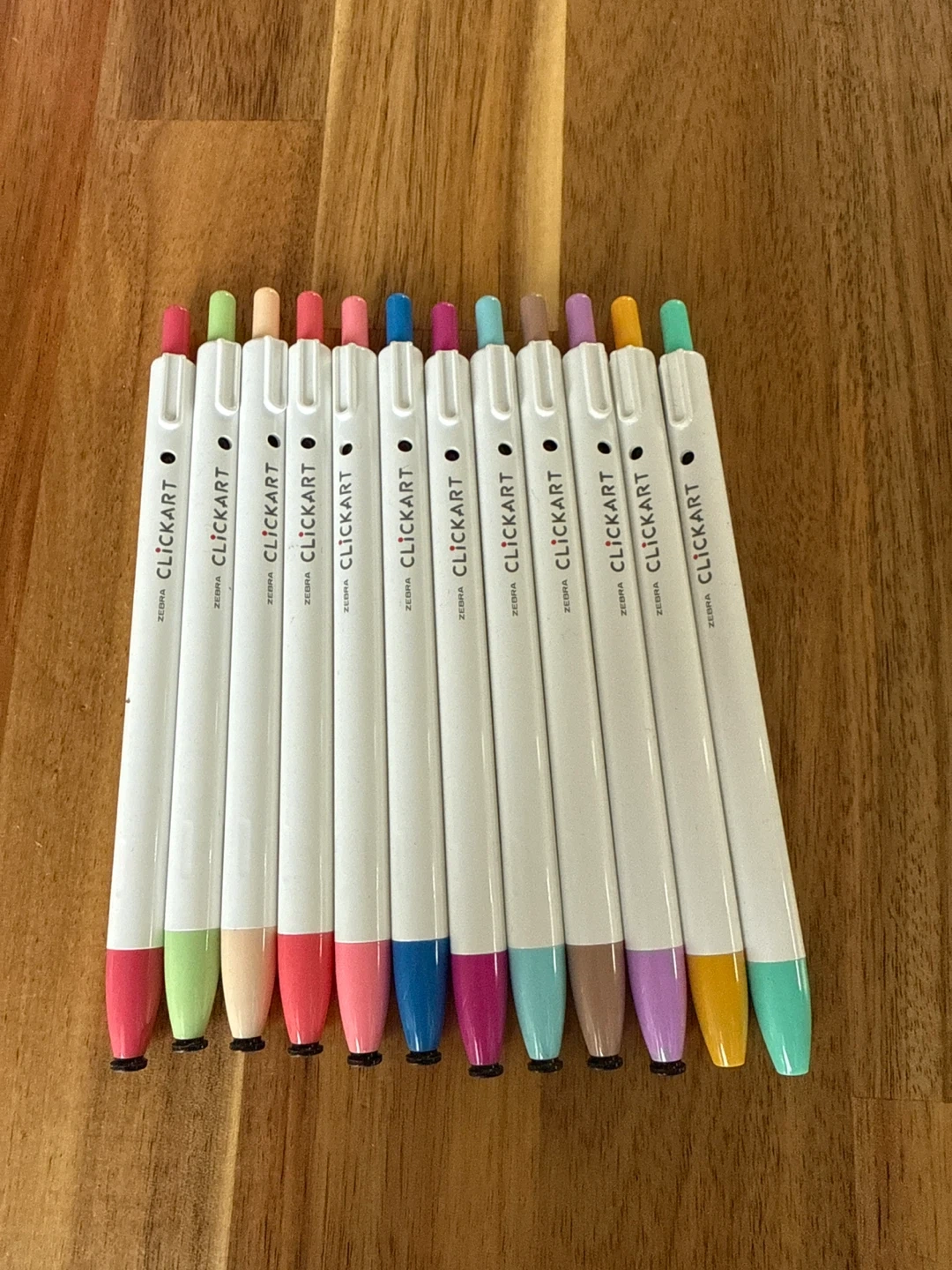 46Selling a set of Zebra Clickart retractable marker pens. These pens are great for adding a pop of colour to your notes or artwork. They are in excellent condition and only tested out, then never used again. Miniature pincher friendly/smoke free PICKUP SCENIC ACRES