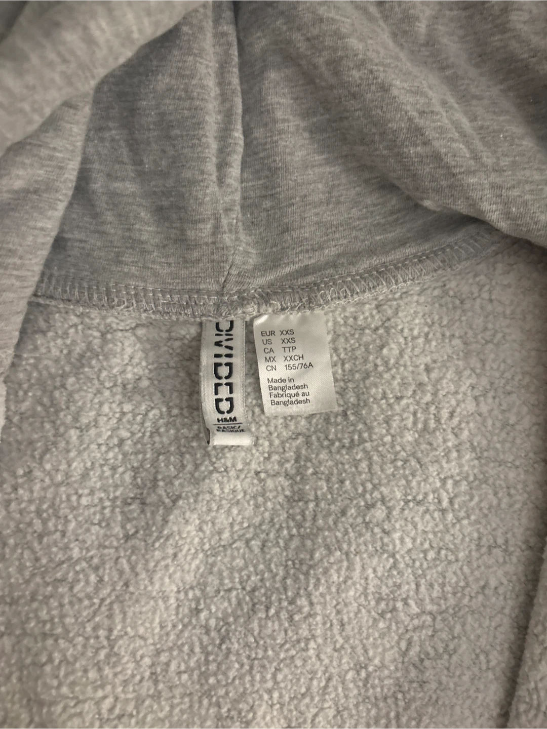 This grey zip-up hoodie is from H&M Divided. It's made of a soft cotton blend with a fleece lining. Features a full zipper, two front pockets, and a drawstring hood. Size XXS.