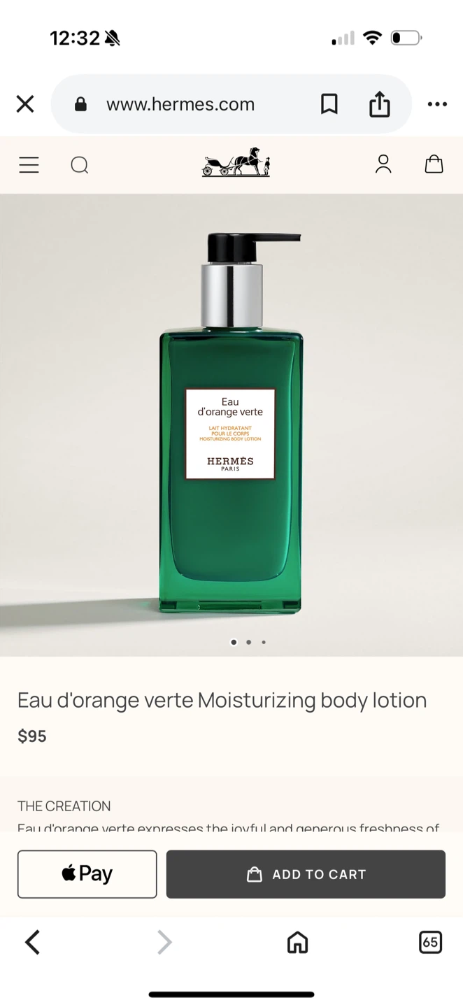 This is Hermès Eau d'Orange Verte moisturizing body lotion. It's refillable. Includes original box. 200ml / 6.5 fl oz. Box is a bit smooshed but lotion is unopened.
