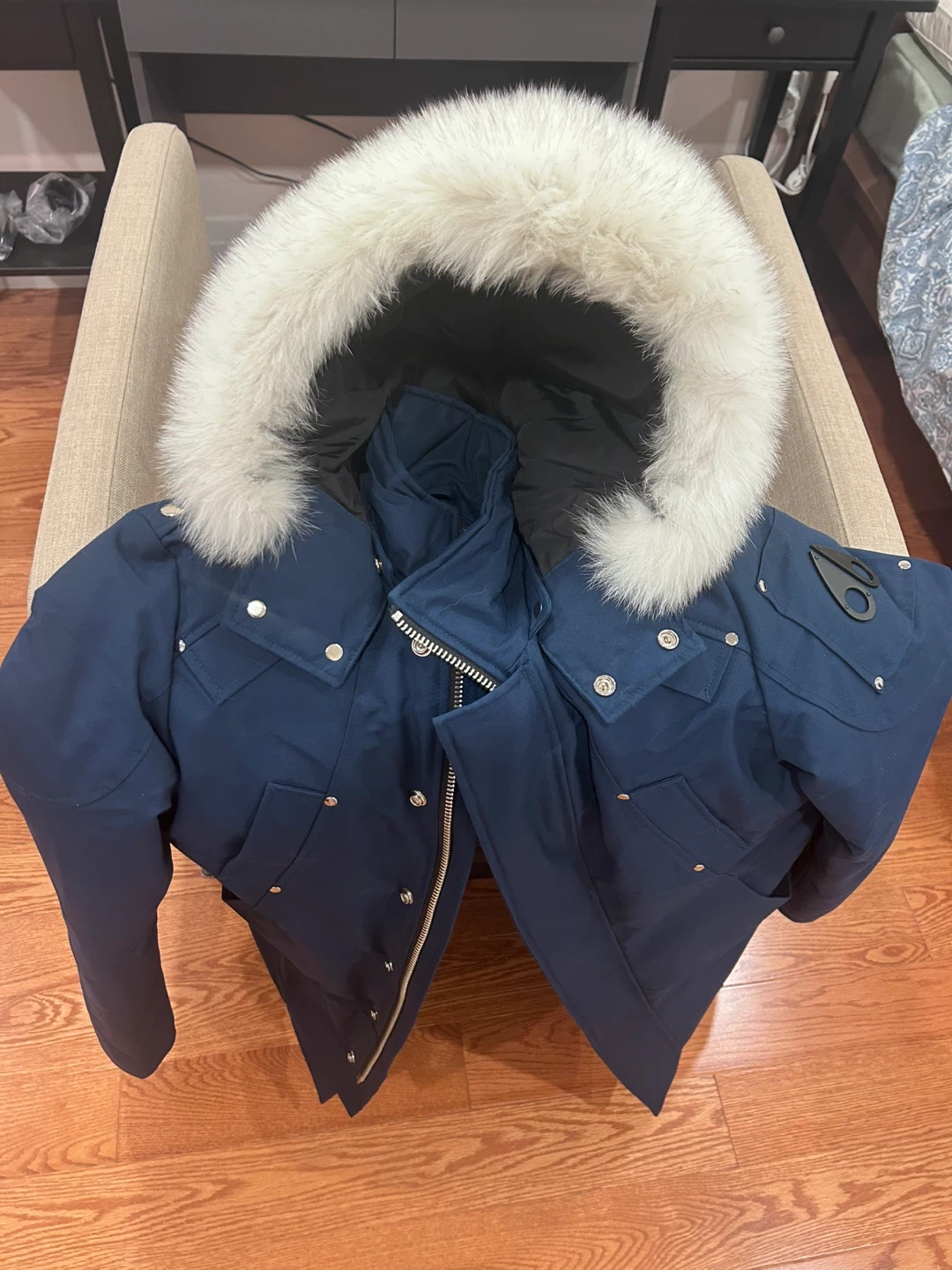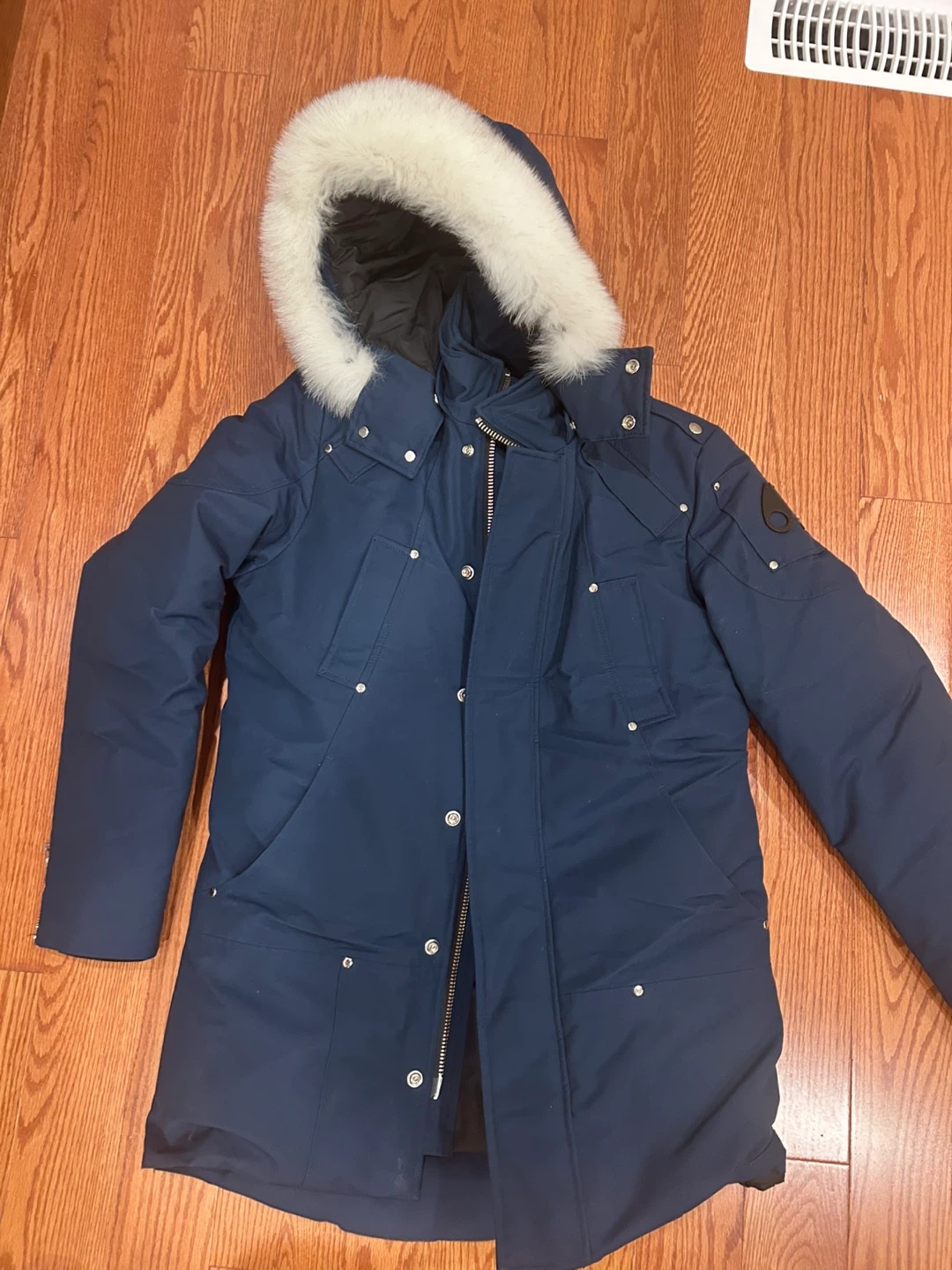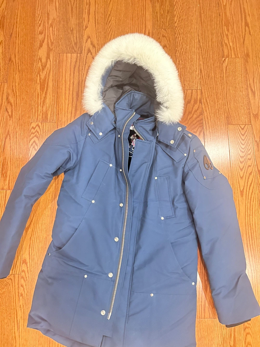 Selling a Moose Knuckles parka in a beautiful blue color! It's a stylish and warm down-filled coat, perfect for the cold weather. I only wore it once or twice. There are no tears or stains. I will be in rh at the weekend, if you are interest in it let me know!