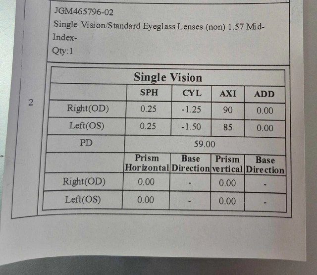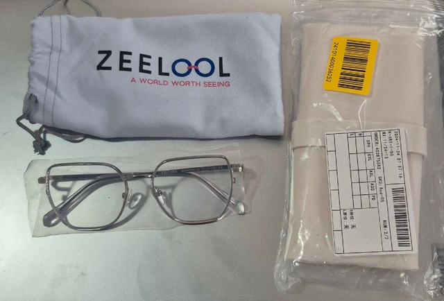 Selling a pair of ZEELOOL eyeglasses with a stylish silver frame. These glasses feature single vision lenses with the following prescription: Right (OD) 0.25 -1.25 90 0.00, Left (OS) 0.25 -1.50 85 0.00, and a PD of 59.00. They come with the original ZEELOOL case and pouch. These are gently used and ready for a new owner. Brand: ZEELOOL. Frame Colour: Silver. Lens Type: Single Vision. Prescription Details: Included in description. If the ad is up, they're still available, so don't hesitate to reach out! Pickup in Brampton near Sheridan college Davis campus