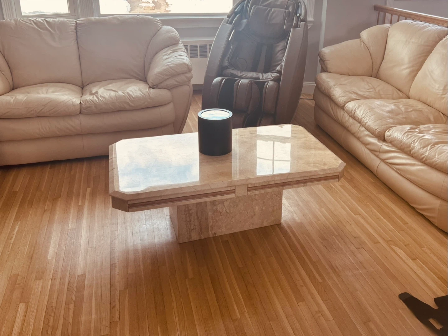 Travertine Coffee Table with Pedestal Base