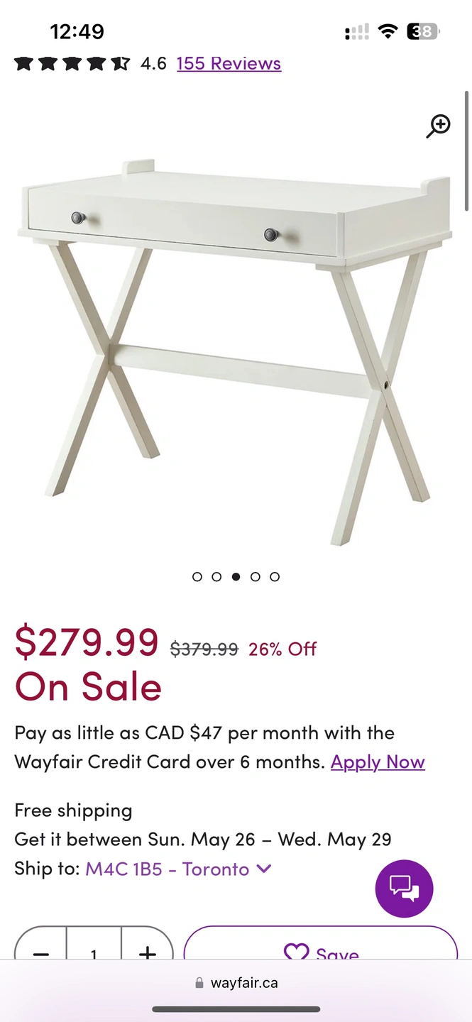 Price on Wayfair: 279.9+ Tax