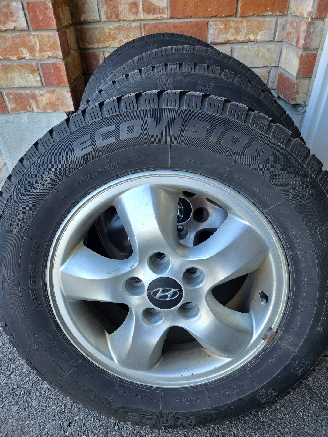 Complete set of 4 Ecovision W686 Winter Tires mounted and balanced on Hyundai Factory Rims.