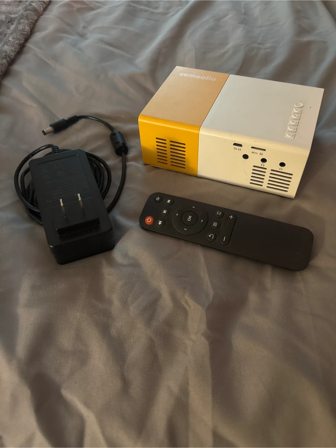 60Selling a Zemeollo mini projector in great condition! It comes with a remote and a power adapter. Perfect for movie nights or presentations
