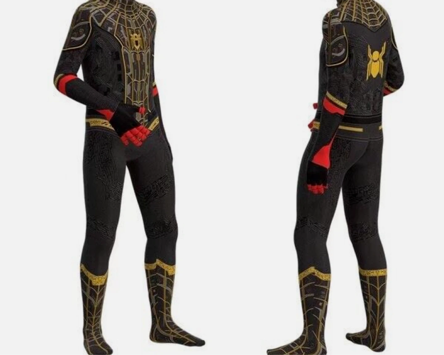 Selling a Spider-Man black and gold suit costume! This cool suit features a detailed web pattern with gold accents and a red mask. Perfect for any Spider-Man fan or costume party! Size boys 18 or 170 pls see size chart provided in photos Layed flat it’s 58” long Meet up and cash only pls Meet up is in Nobleton