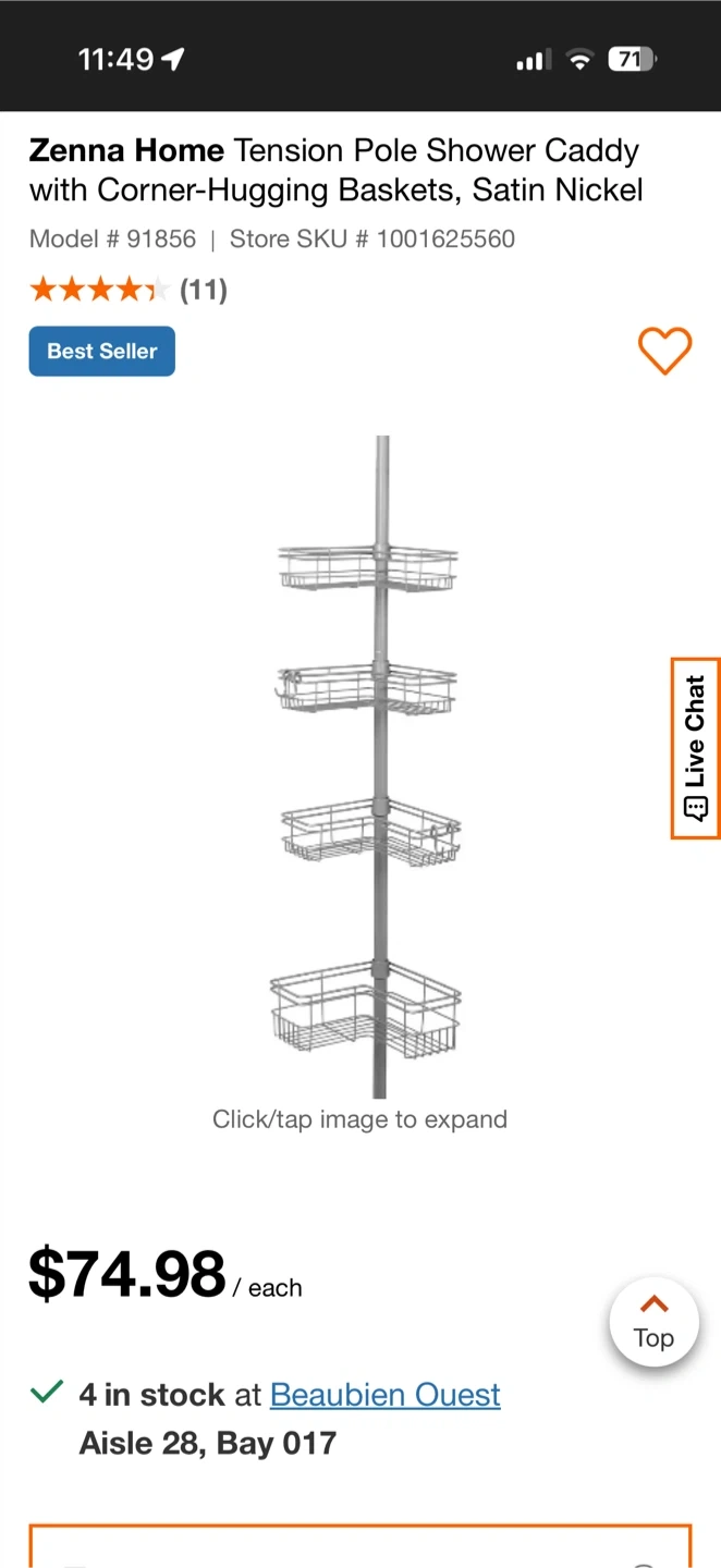 10🛁 Zenna Home 4-Tier Tension Pole Shower Caddy – Satin Nickel Price: $50 (Brand New, Never Opened) Retail Price: $74.98 + tax Condition: Brand new in box, never opened or used. Model #: 91856 Dimensions: • Height: 97 in (246.4 cm) • Width: 12 in (30.5 cm) • Depth: 8.6 in (21.8 cm) Features: • 4 corner-hugging baskets for maximum shower storage • Adjustable tension pole fits most standard shower spaces • Rust-resistant satin nickel finish • Easy, tool-free installation Perfect for organizing shampoo, conditioner, soap, and more — stylish and functional! 📍 Pickup:Park extension area 💰 Price: $50 (firm) ⸻ 🛁 Zenna Home – Caddy de douche sur poteau à tension, 4 tablettes – Nickel satiné Prix : 50 $ (Neuf, jamais ouvert) Prix en magasin : 74,98 $ + taxes État : Neuf dans la boîte, jamais ouvert ni utilisé. Modèle : 91856 Dimensions : • Hauteur : 97 po (246,4 cm) • Largeur : 12 po (30,5 cm) • Profondeur : 8,6 po (21,8 cm) Caractéristiques : • 4 tablettes d’angle pour un rangement optimal dans la douche • Poteau à tension ajustable qui s’adapte à la plupart des douches standards • Finition en nickel satiné résistante à la rouille • Installation facile, sans outils Parfait pour organiser shampoing, revitalisant, savon et plus encore — élégant et pratique ! 📍 Ramassage : Park Extension area 💰 Prix : 50 $ (ferme)