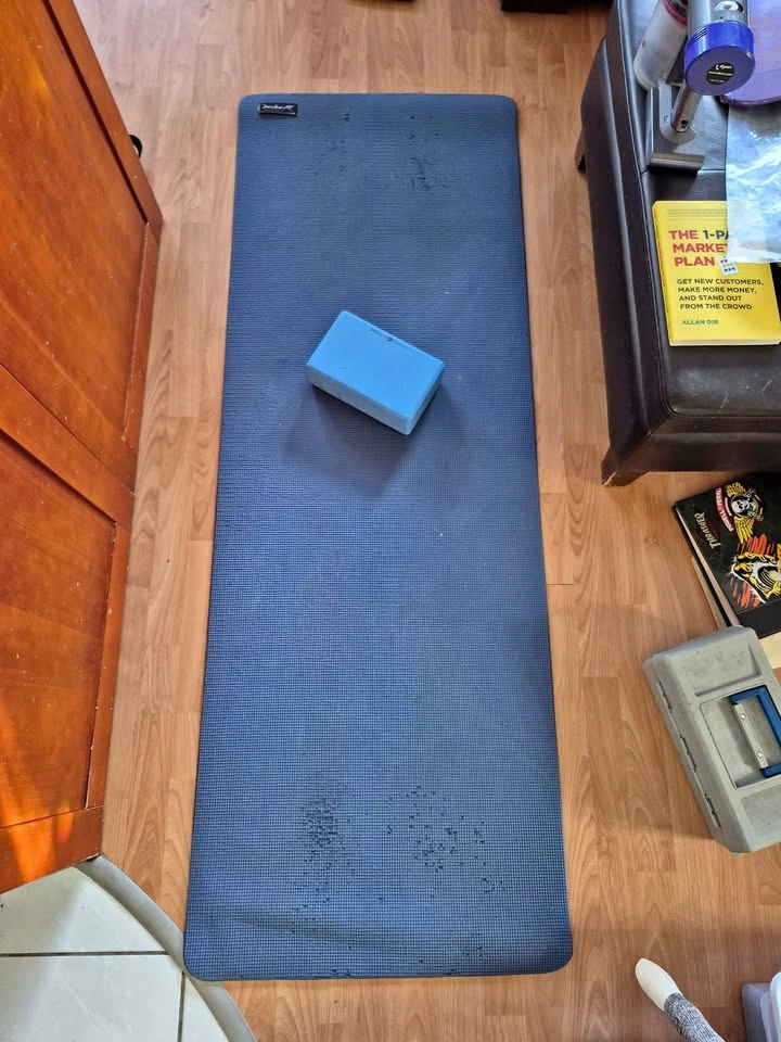 80Get started or continue your yoga journey with this complete set from Zenation Athletics. Everything you need for a comfortable, supported practice at home or in the studio. **Why You'll Love It:** - **Generous Mat Size**: 67½" × 24" provides plenty of room for all body types and poses - **Added Support**: Yoga block helps you achieve proper alignment, deepen stretches, and make challenging poses more accessible - **Complete Practice Set**: No need to buy separately – mat and block work together for a well-rounded practice - **Portable**: Easy to roll up and take to classes, the park, or use at home **What's Included:** - Zenzation Athletics yoga mat (dark blue, 67½" × 24") - Zenzation Athletics yoga block (blue, 9" × 5½" × 2¾") **Condition:** Mat shows some flaking in a couple of areas but is still fully usable and functional. Block in good condition. If you see this post, it's available — don't hesitate to reach out! Cash only, please. Moving out of the country and selling everything I own — check out my other listings for furniture, electronics, sporting gear, kitchenware, collectibles, and plenty more!