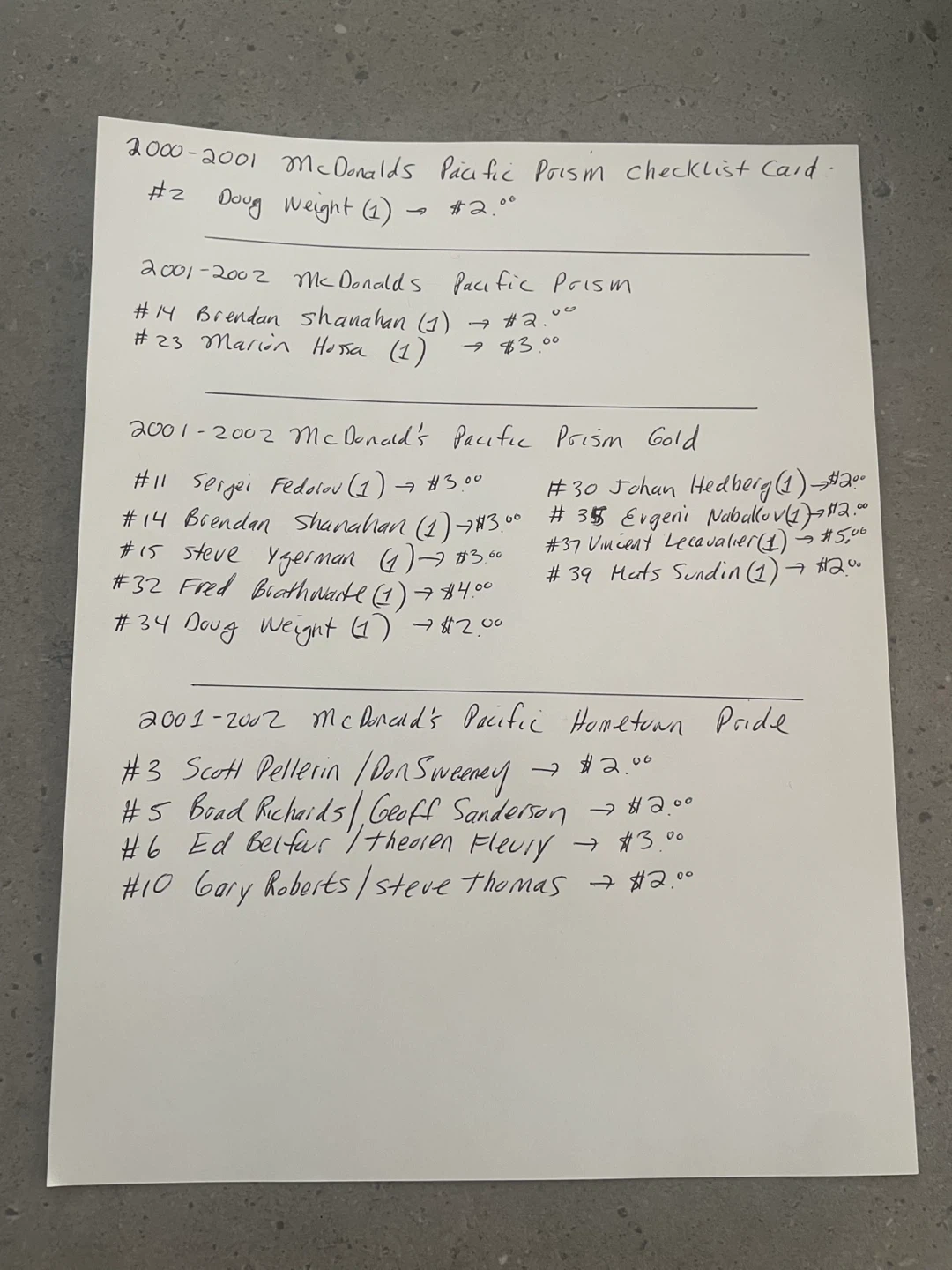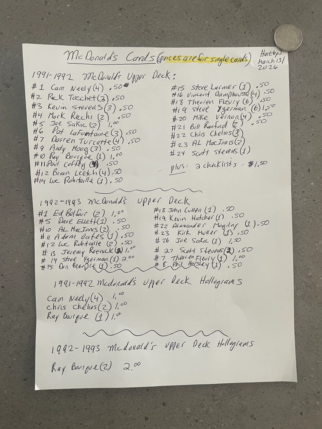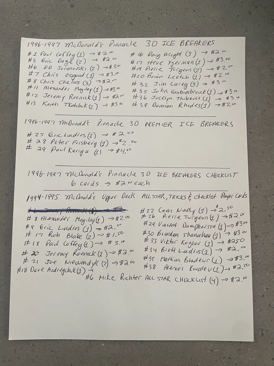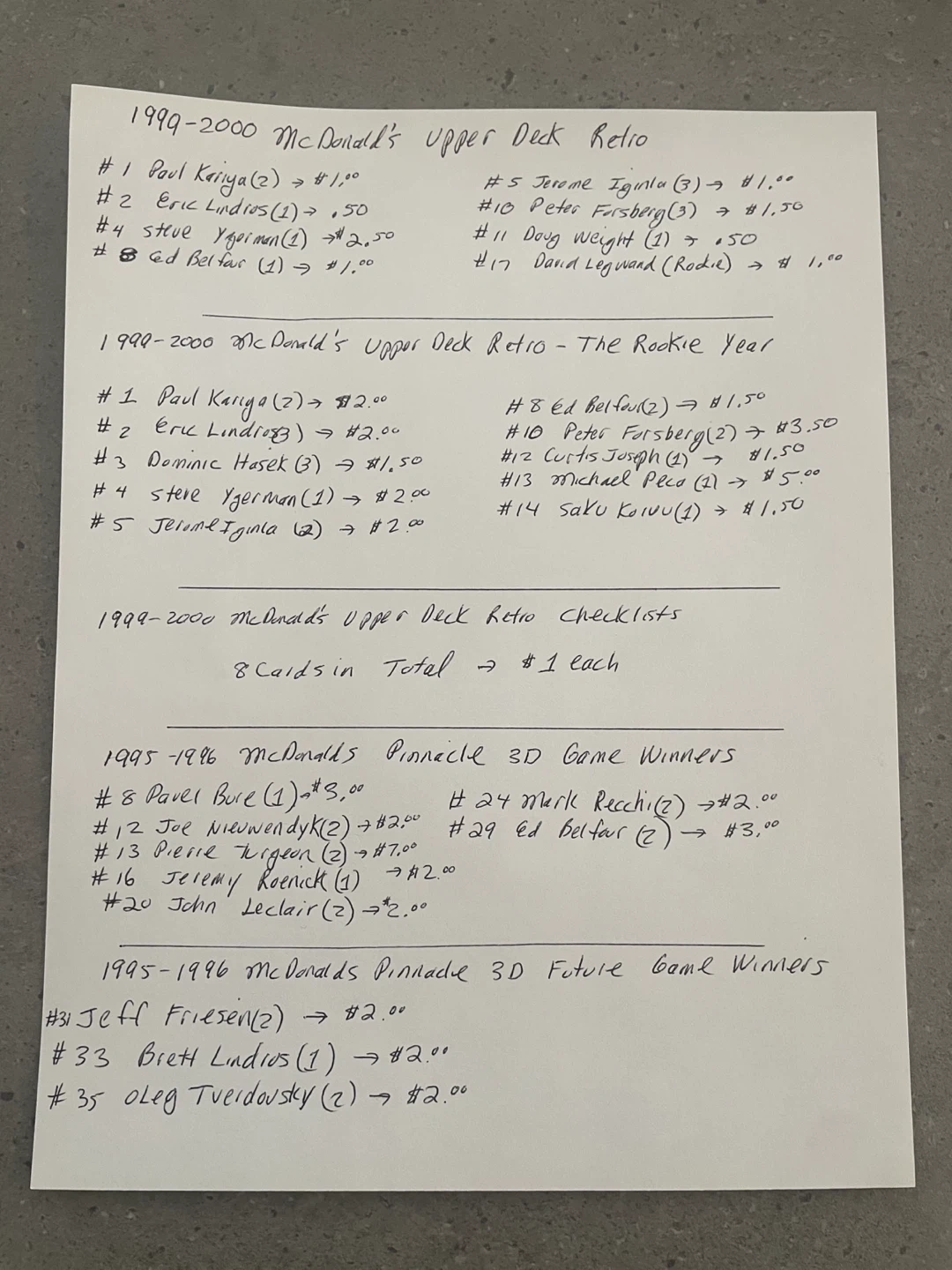 Buy & SellMcDonald's Hockey Cards 1991-2002McDonald's Hockey Cards 1991-2002$1Prices are listed starting pages 5 to page 9 Will sell any number of cards!ConditionLike newWHERE TO MEETCharleswoodView MapSELLERHartleyElmhurst151 review1 chats·1 favorites·11 viewsSEND CHAT TO SELLERHi Hartley! I’m interested in your listing.Hi Hartley! I’m interested in your listing.Get the Karrot app to chatSign In to chat