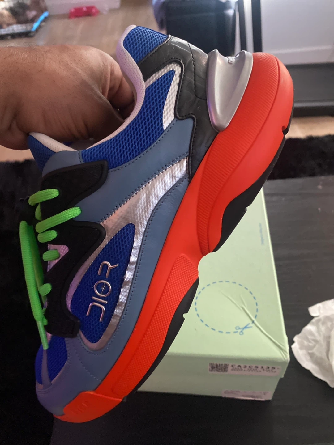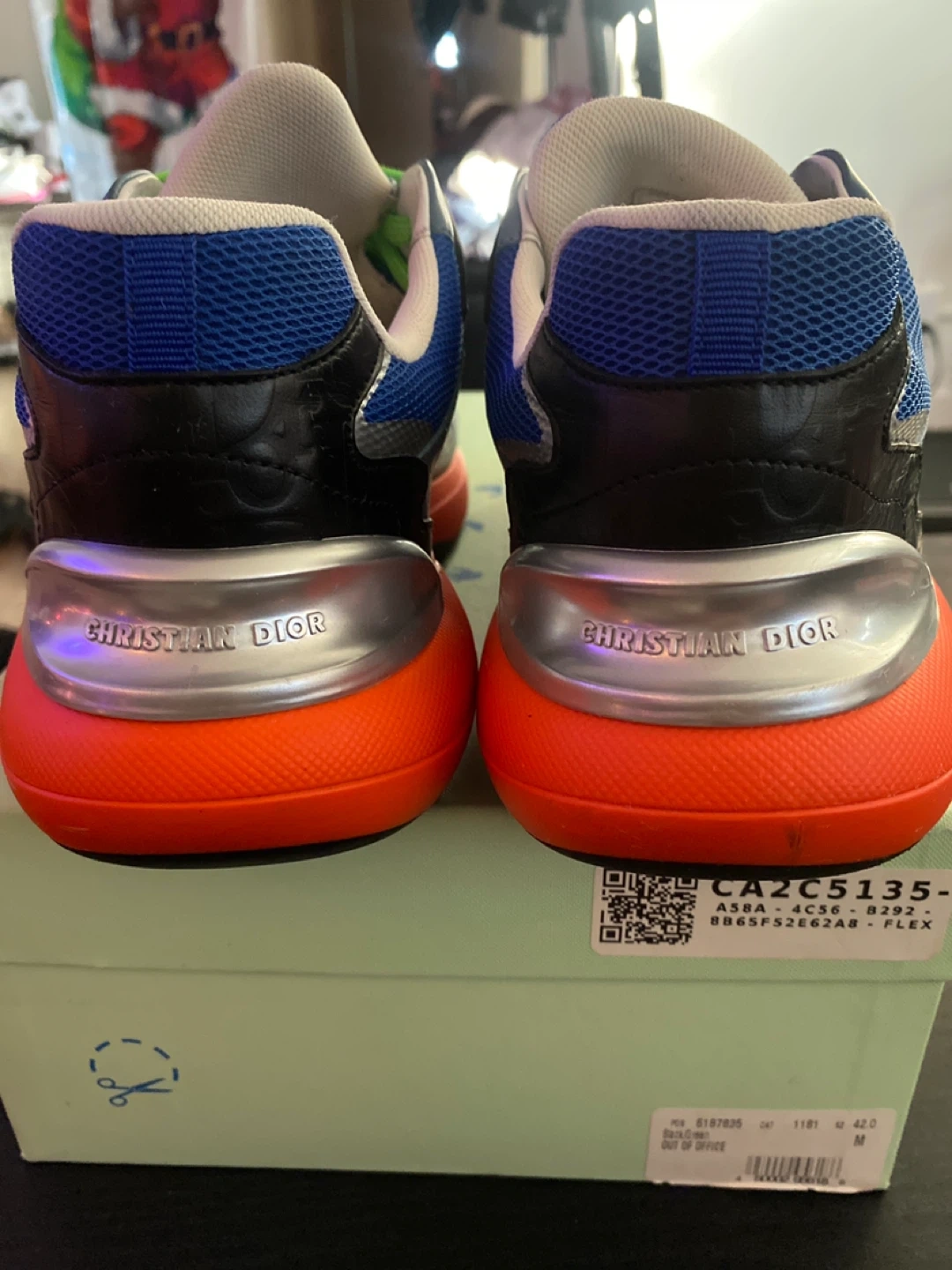 Selling a pair of Dior B30 sneakers in a striking blue and orange colorway! The shoes feature the iconic Dior logo and come with the original box. They are in great condition and ready for a new owner I only wore them three times