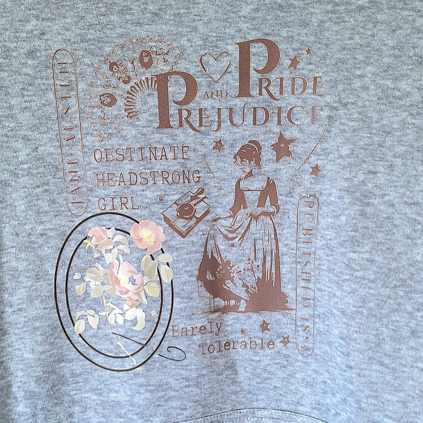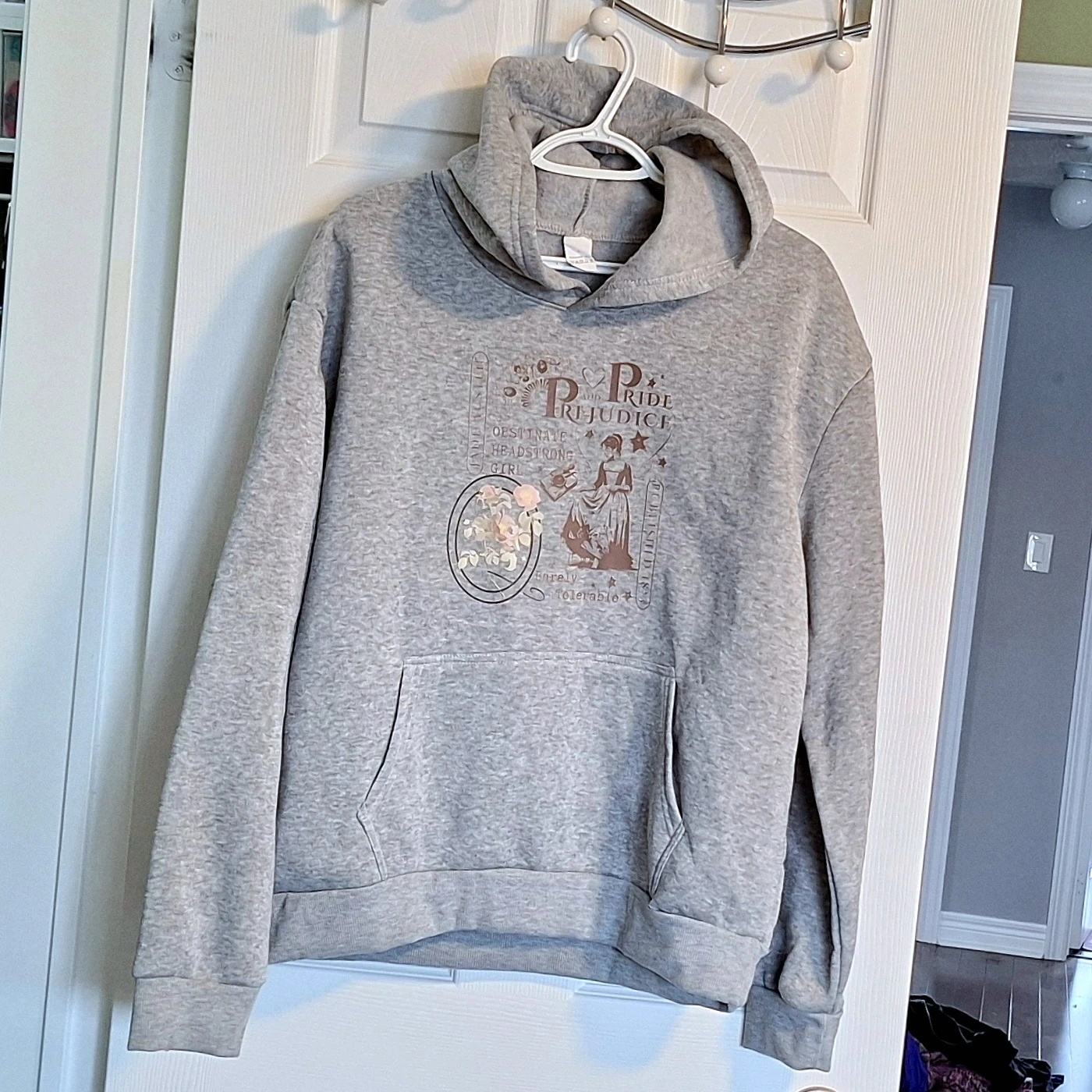 BRAND NEW never worn hoodie - Light grey hoodie with design of Pride and Prejudice by Jane Austen