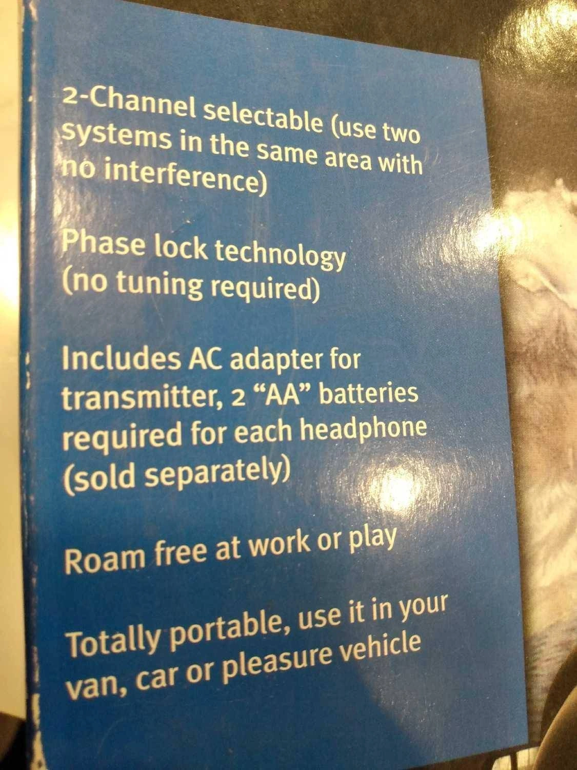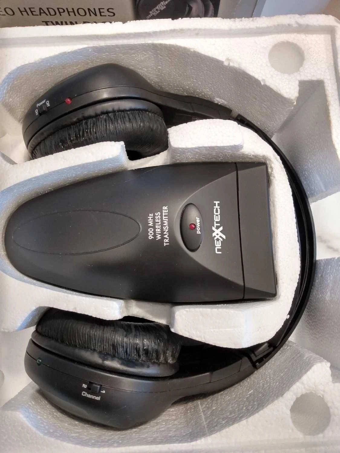 Selling a Nexxtech 900 MHz Stereo Headphones Twin Pack. It includes an AC adapter for the transmitter. Please note that 2 "AA" batteries are required for each headphone, but they are sold separately. It's totally portable, so you can use it in your van, car, or pleasure vehicle. Don't get tied up by wires!