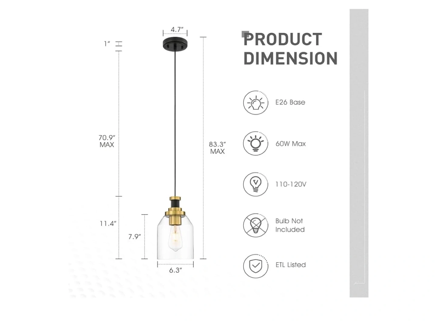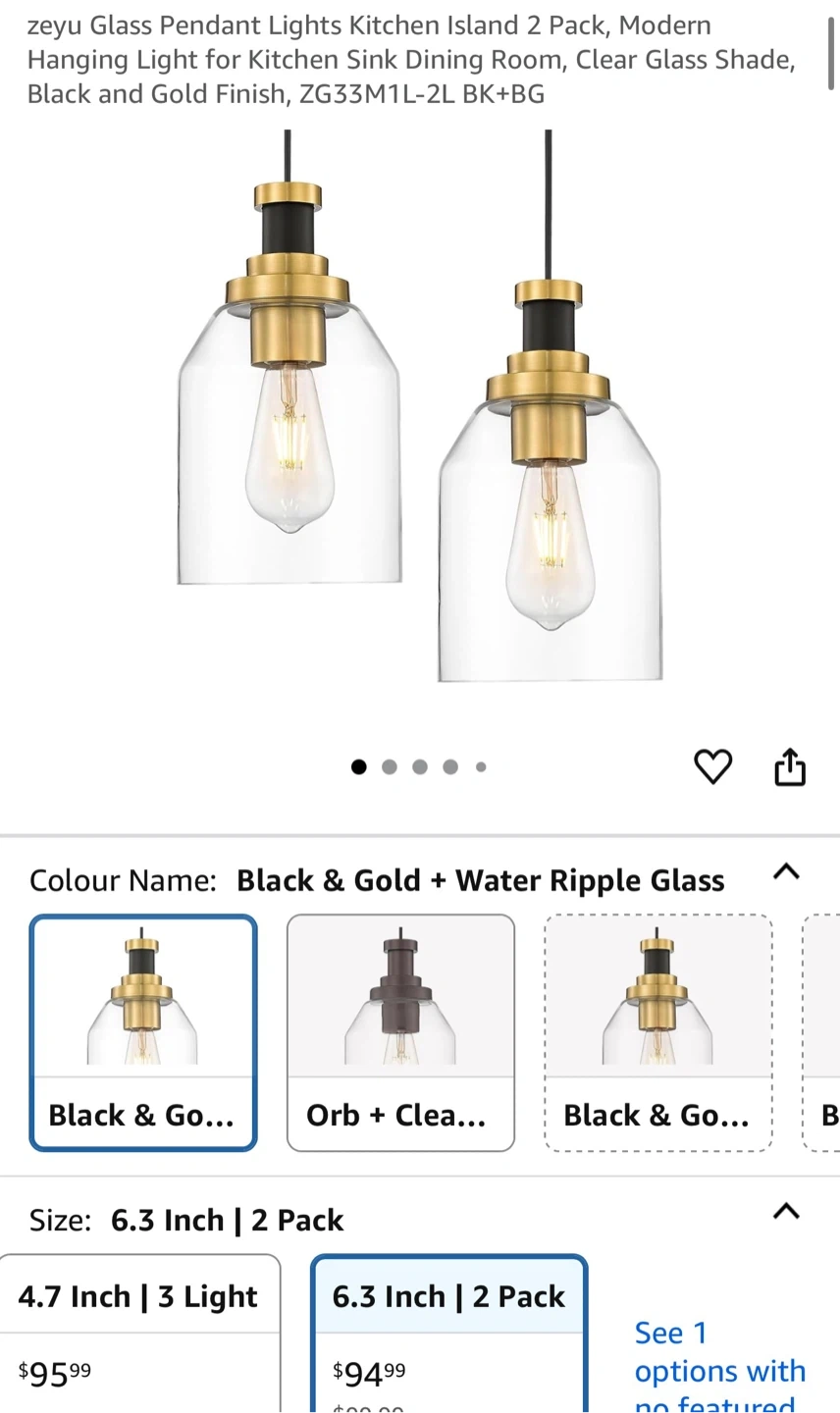 Selling a Zeyu glass pendant light with a black and gold finish. It features a clear glass shade, perfect for adding a touch of elegance to your kitchen island or dining room. Dimensions: - Medium: 8.3"H * 4.7"L