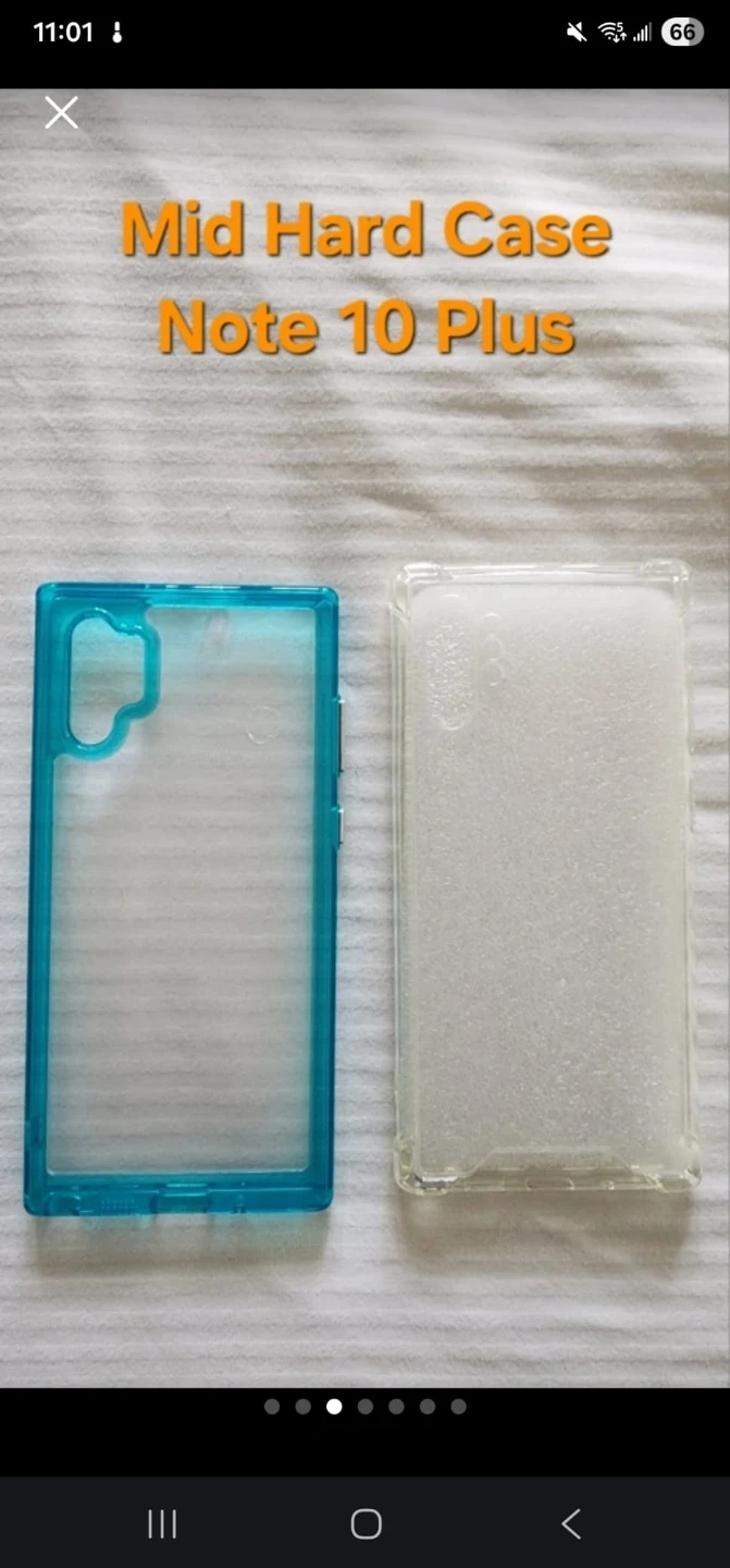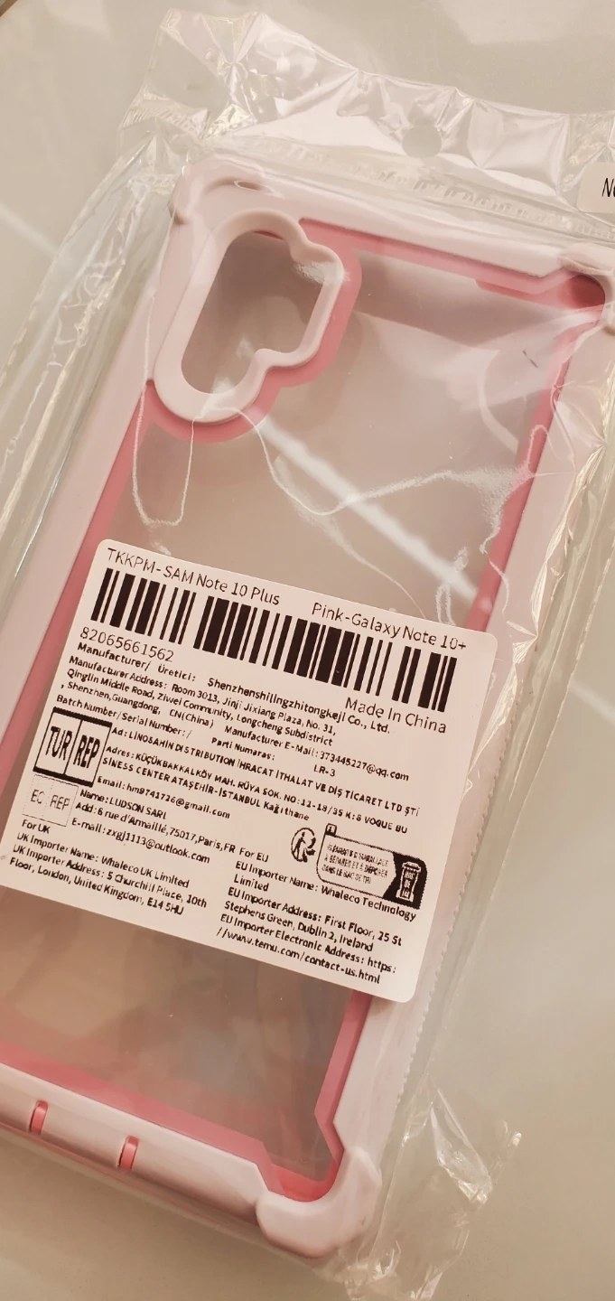 Phone case for Samsung Galaxy Note 10 Plus. It's pink and comes with a clear back and a bumper frame. Some cases include a ring stand.
