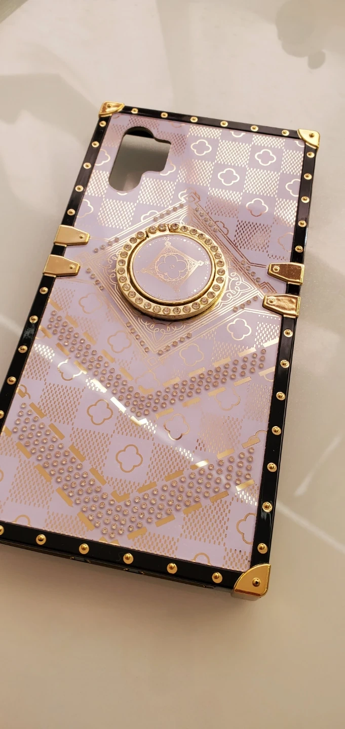 Phone case for Samsung Galaxy Note 10 Plus. It's pink and comes with a clear back and a bumper frame. Some cases include a ring stand.