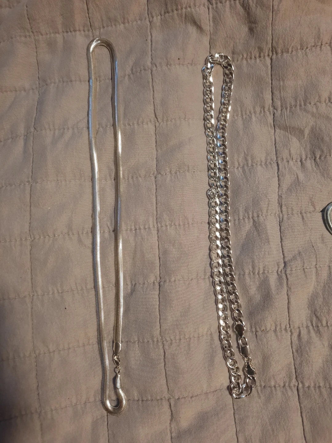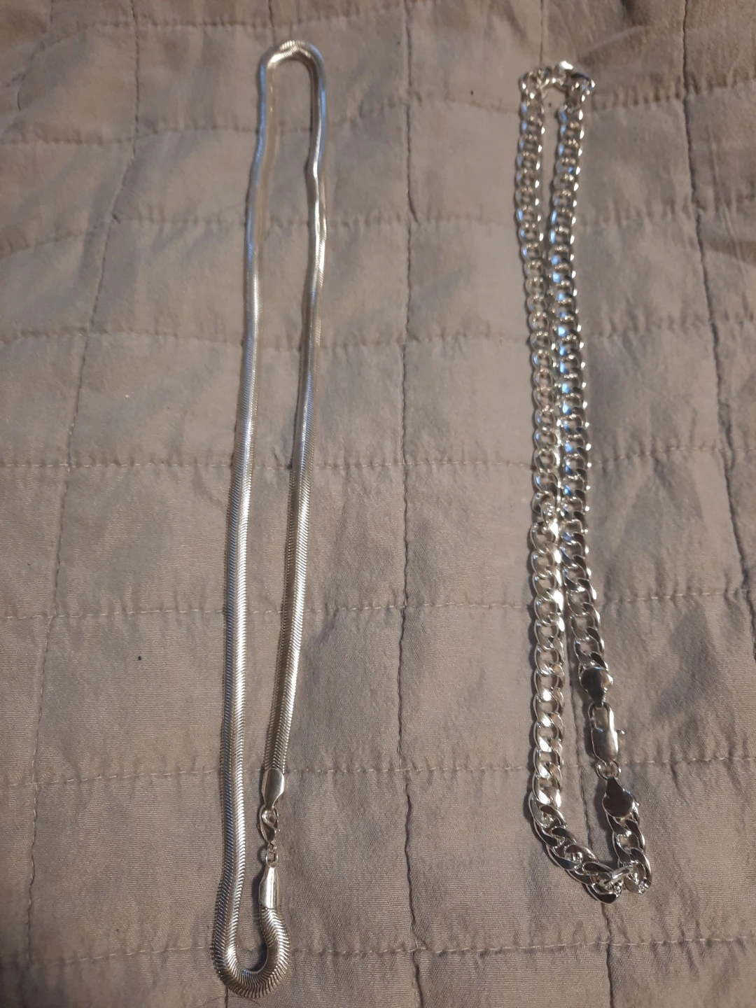 Comes with a herringbone chain and a curb chain. Both are silver in tone. They're great for layering or wearing on their own.
