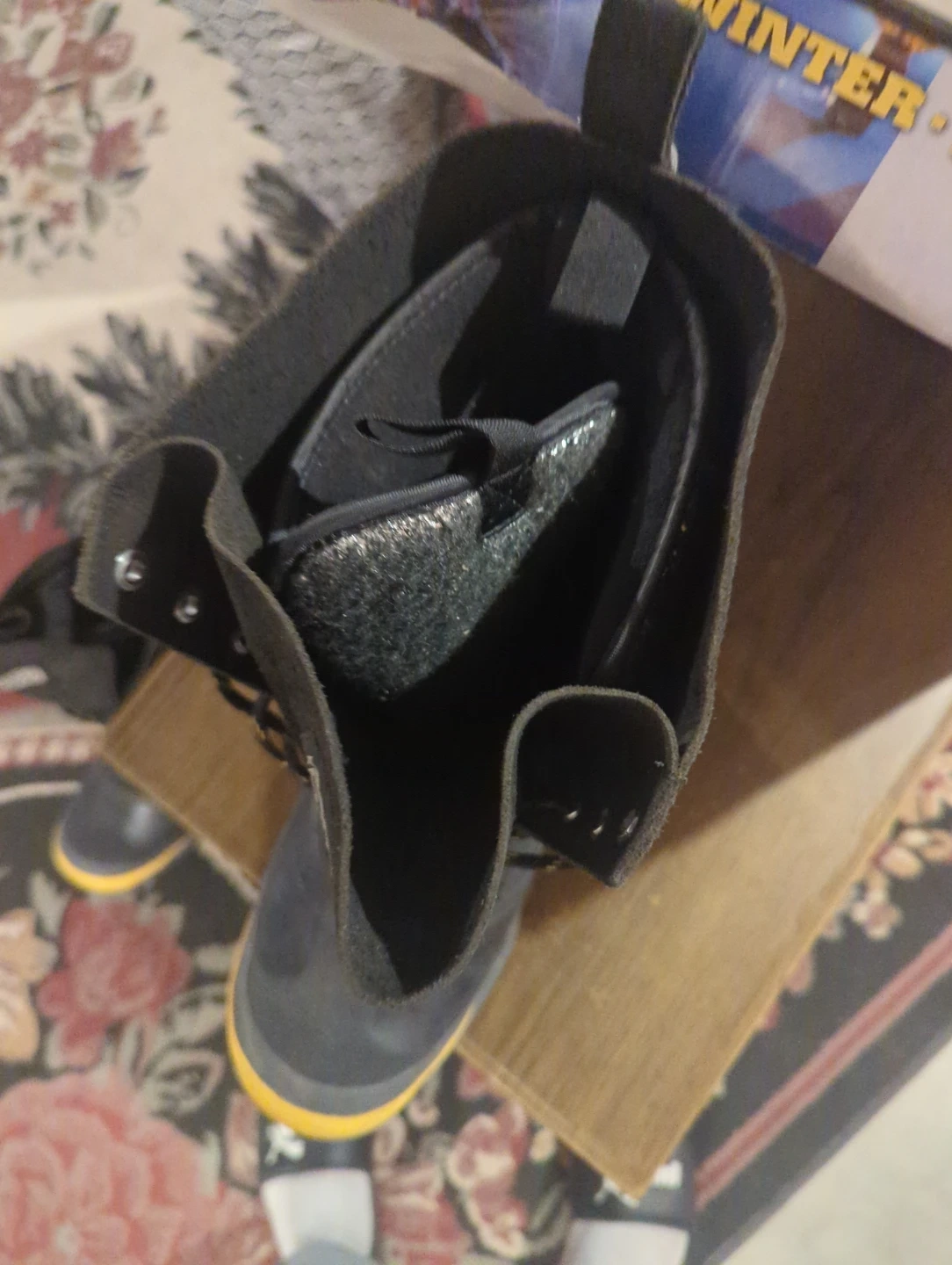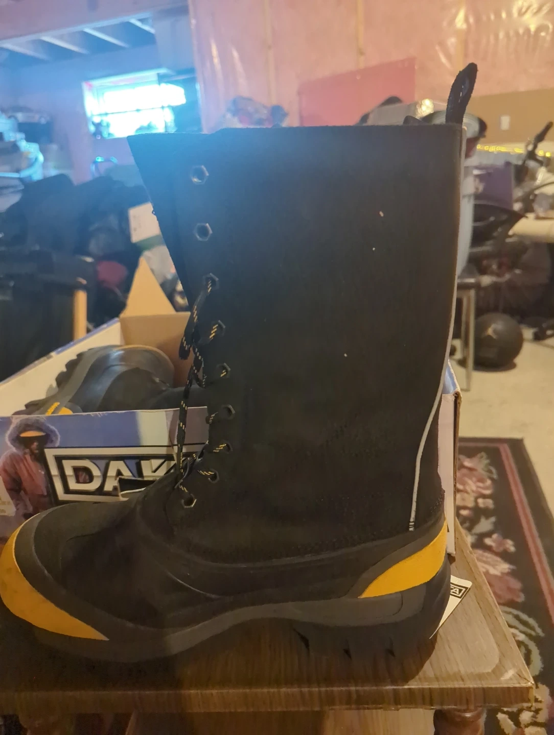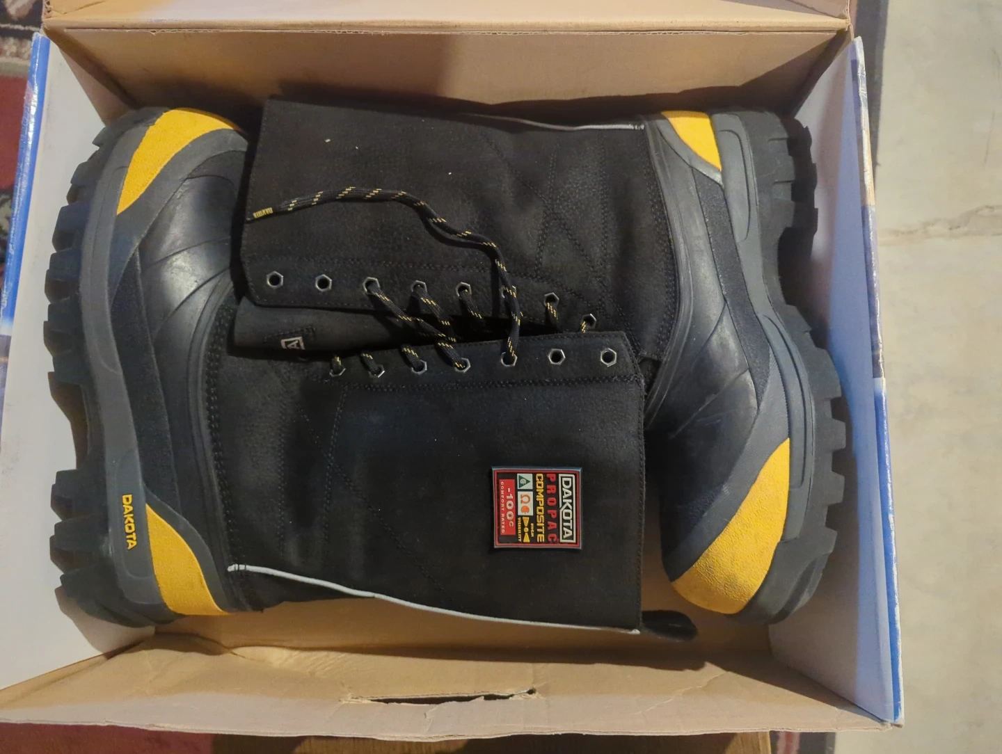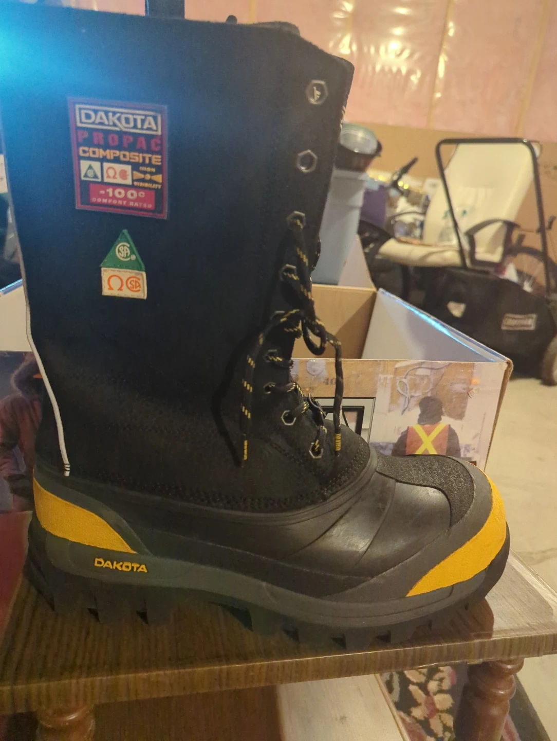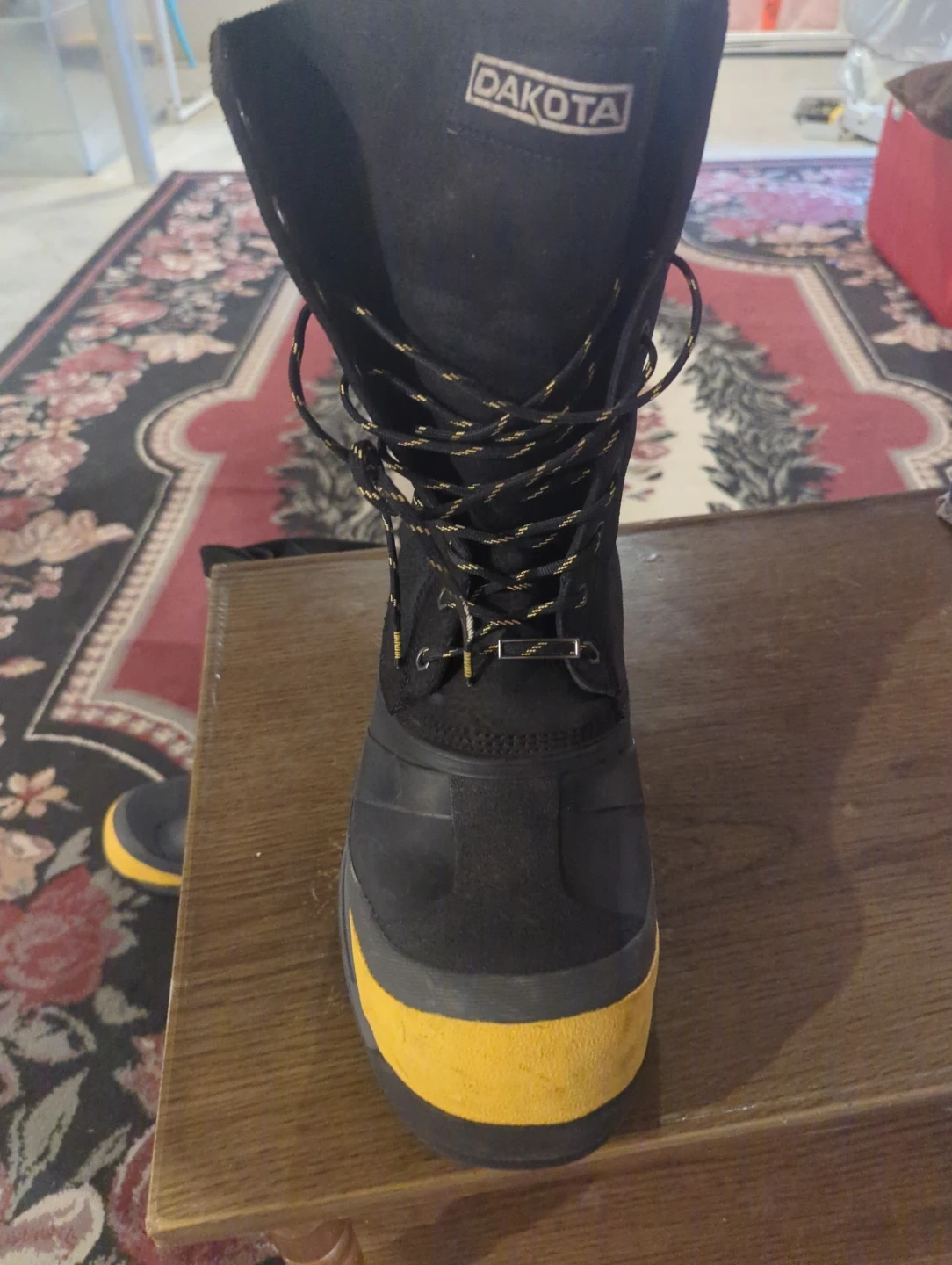 Dakota men's "Rig Boss" winter boots. Black colour with yellow accents. Size 11. Composite toe construction. Keeps your feet warm with -100 C comfort rating. Laced up with durable construction. Basically brand new only use once or twice. If interested please contact me at 587-709-0376.