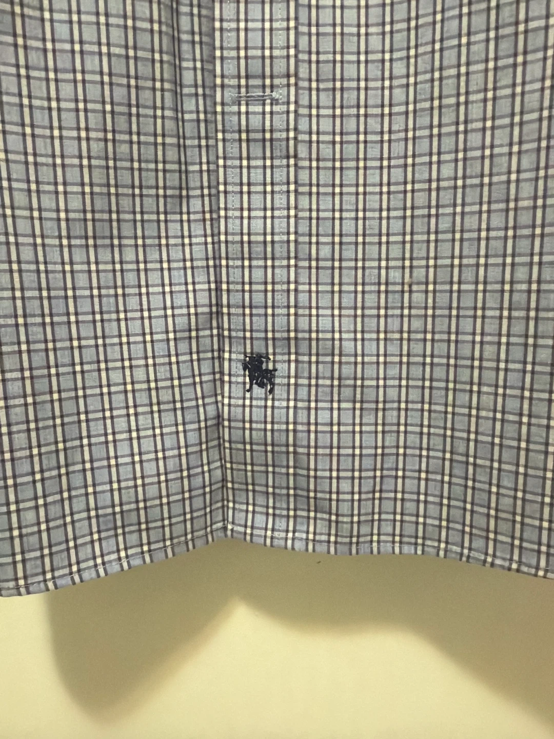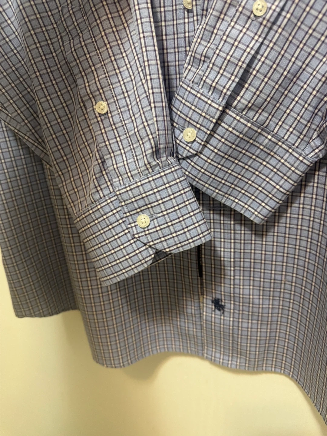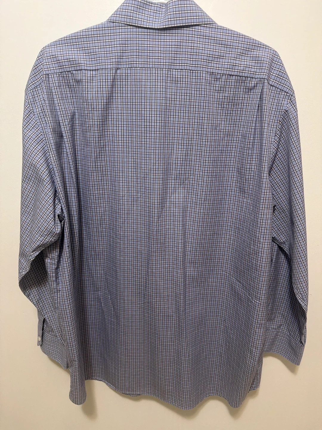 Hart Schaffner Marx dress shirt made from 100% Pima Cotton. It's a non-iron button-up with a plaid pattern. Collar size 17 and sleeve length 33.