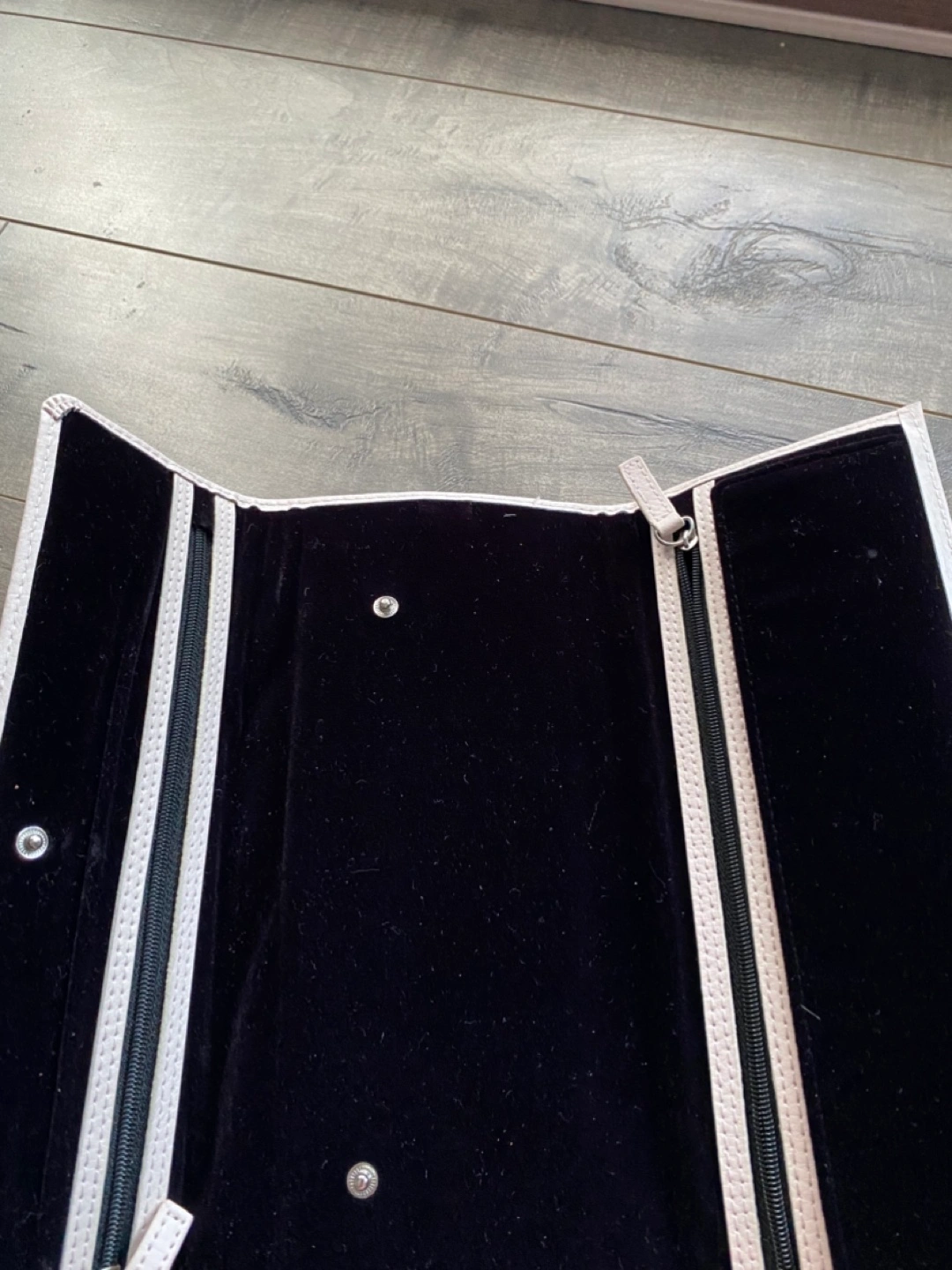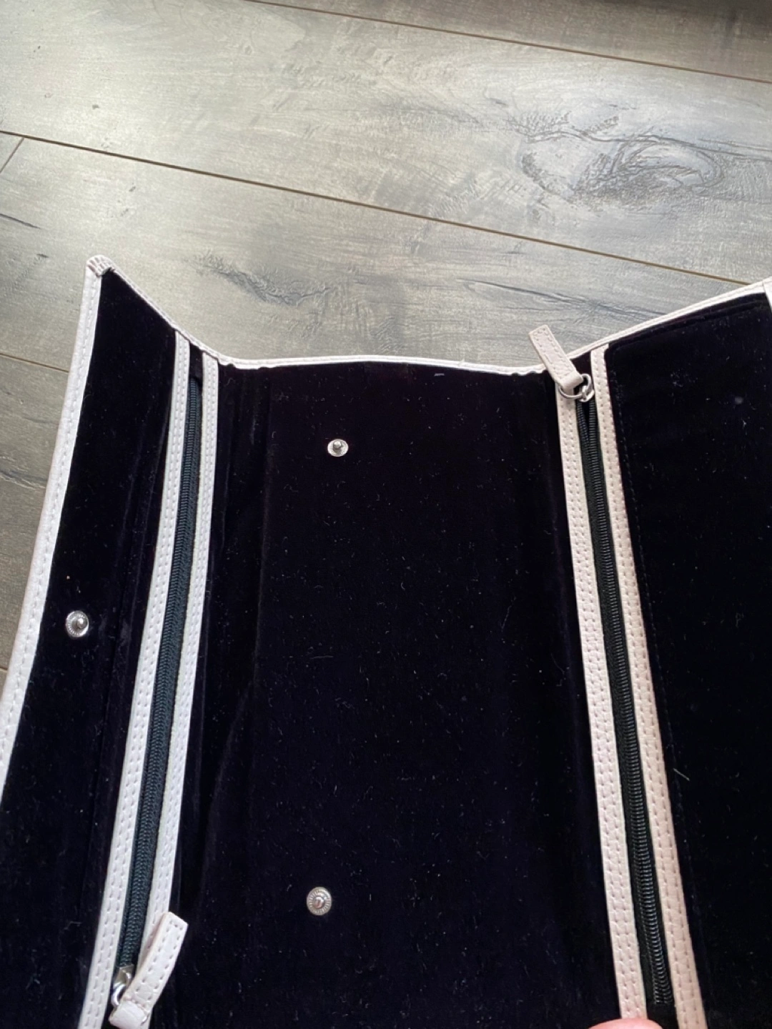 This Pandora jewelry features a velvet interior with multiple zippered compartments and snap closures for secure storage. It's perfect for keeping your accessories tidy while travelling. Sold as is From clean, pet-free, smoke-free home Pick up only in Acadia SE Price is firm Please check my other ads Shipping is available at buyers’ expense