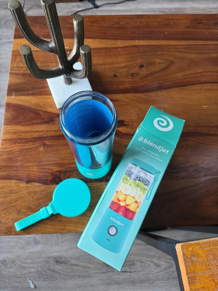 Selling a brand new BlendJet portable blender. Never used and comes with the original box and charging cable. Perfect for making smoothies, protein shakes, juices, or baby food at home, work, gym, or while traveling. Details: Brand new / unused, USB rechargeable, portable and lightweight, original box included, charging cable included. Everything in the photos is included.