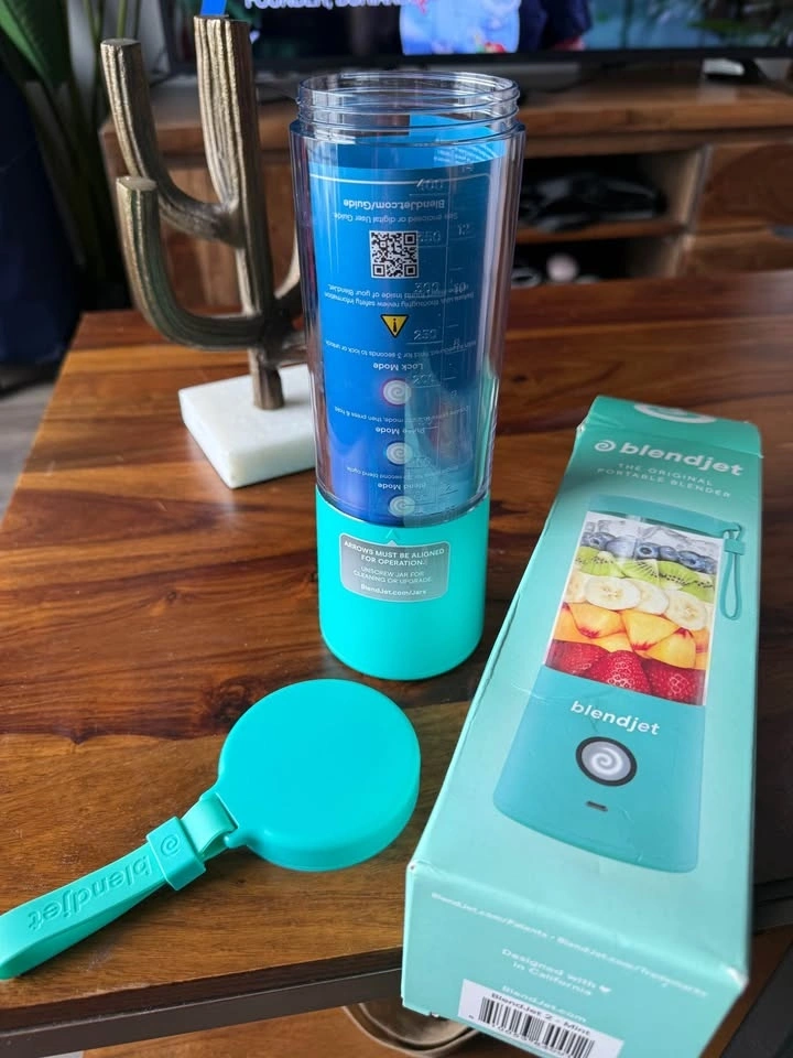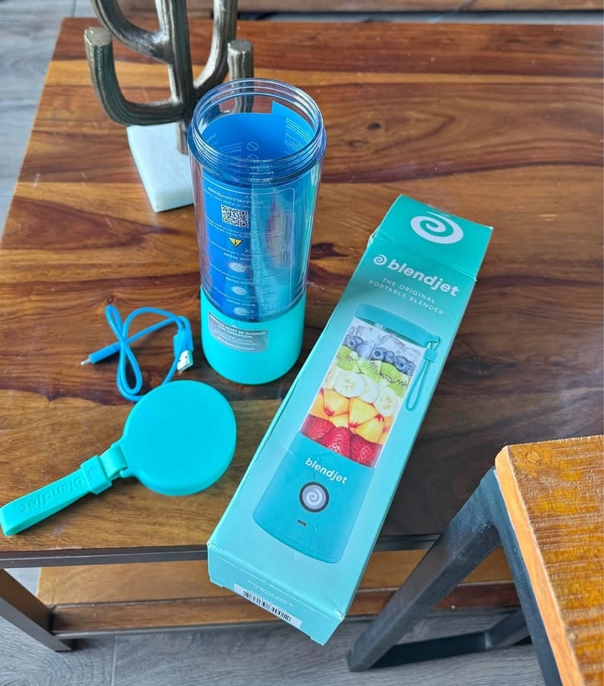 Selling a brand new BlendJet portable blender. Never used and comes with the original box and charging cable. Perfect for making smoothies, protein shakes, juices, or baby food at home, work, gym, or while traveling. Details: Brand new / unused, USB rechargeable, portable and lightweight, original box included, charging cable included. Everything in the photos is included.