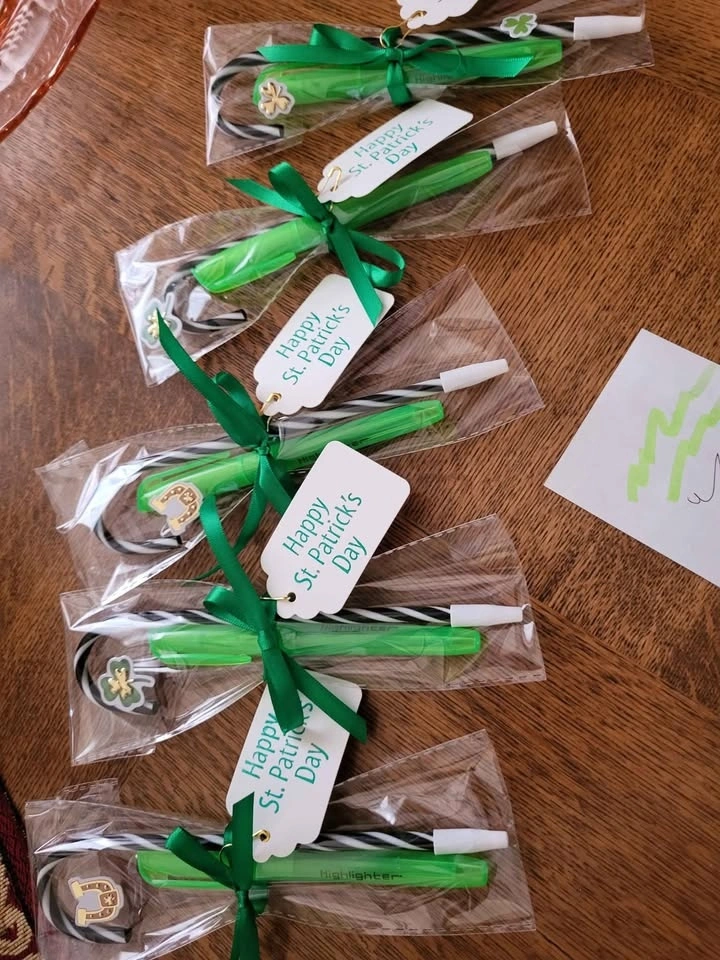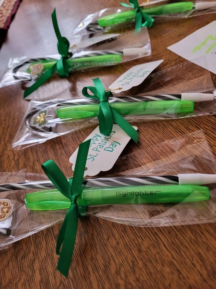 6 Festive party favors for St Patricks Day! Each one has green highlighter and black pen, wrapped with green ribbon and "Happy St Patricks Day" tag. Pick up only Hamilton, Upper James and Mohawk area. Cash only and no holds please.