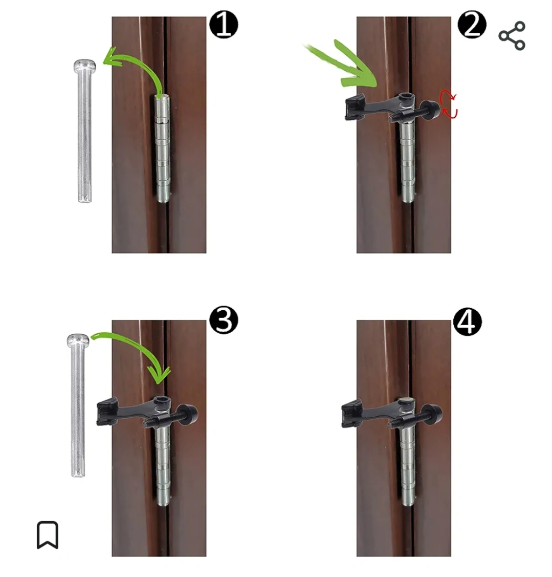 If you have a door that is banging into another wall or furniture, you can install this door bumper/stop by removing a single door pin, slide the door pin into the bumper hole, and reinstall the door pin.