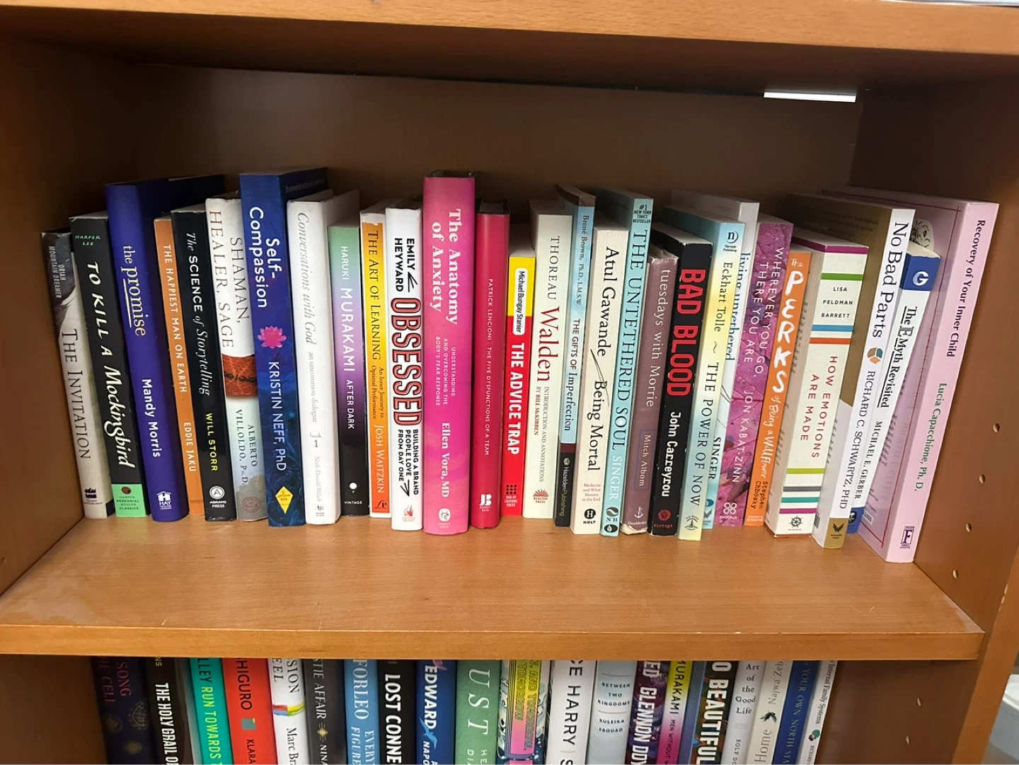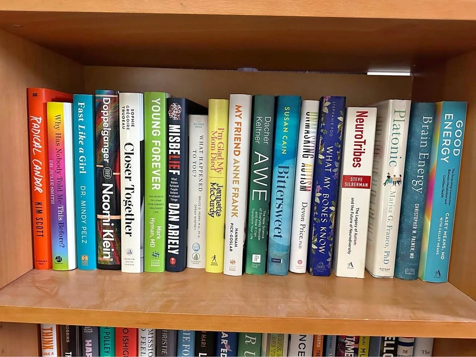 Diverse collection of modern hardcover and paperback books. Selection includes popular self-help, psychology, memoir, and contemporary fiction titles. Spines are intact with no visible damage or heavy wear. Most books are standard trade sizes with clean covers and pages.