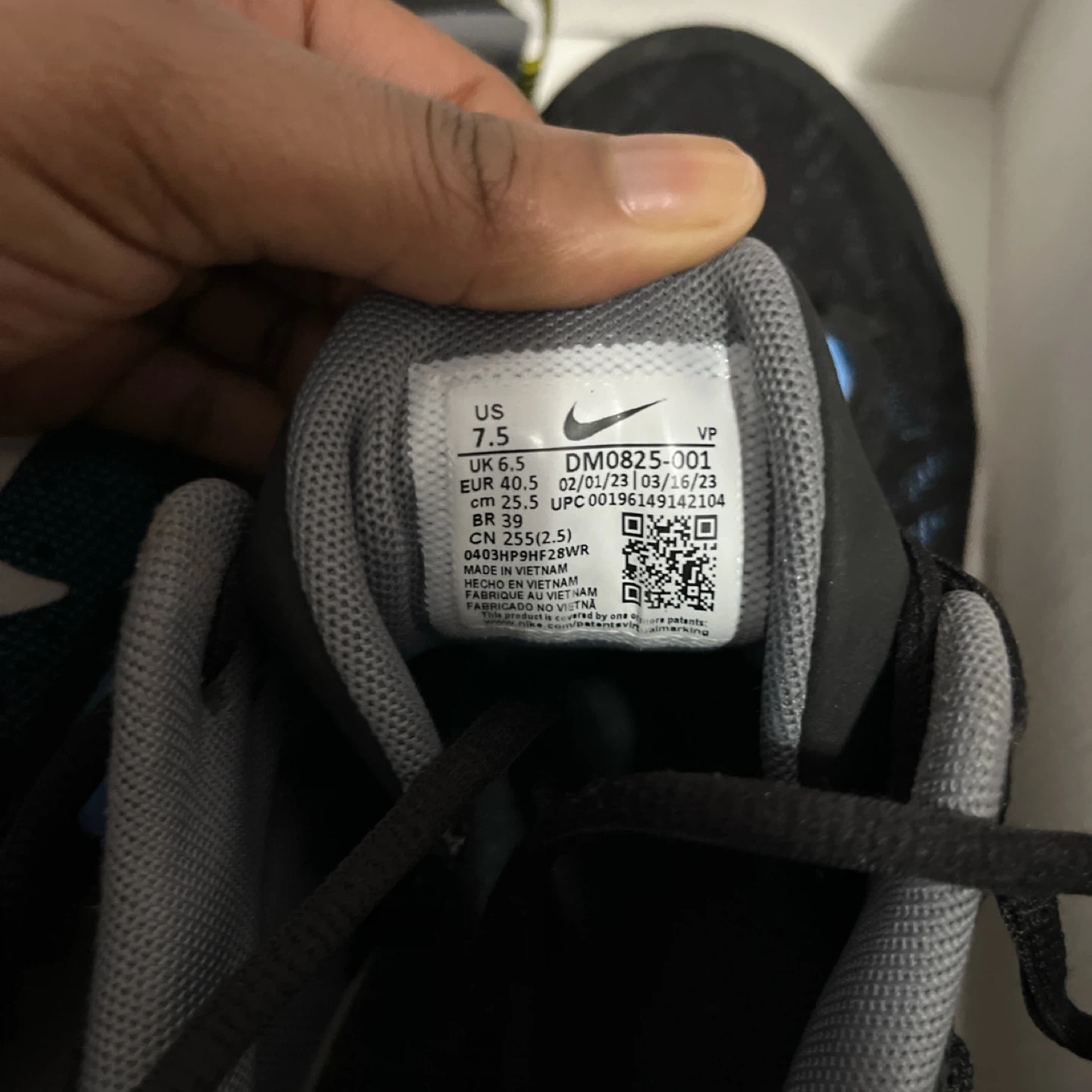 Nike Giannis Immortality 2 basketball shoes in black, white, and blue. Size US 7.5 (UK 6.5, EUR 40.5). Includes original box.