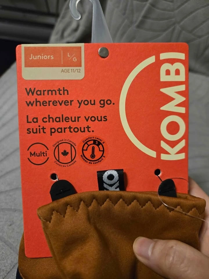 Brand new with tags. Brand: KOMBI. Size: Junior L / G (Age 11β12). Warm, comfortable, and durable. Brown & black color.