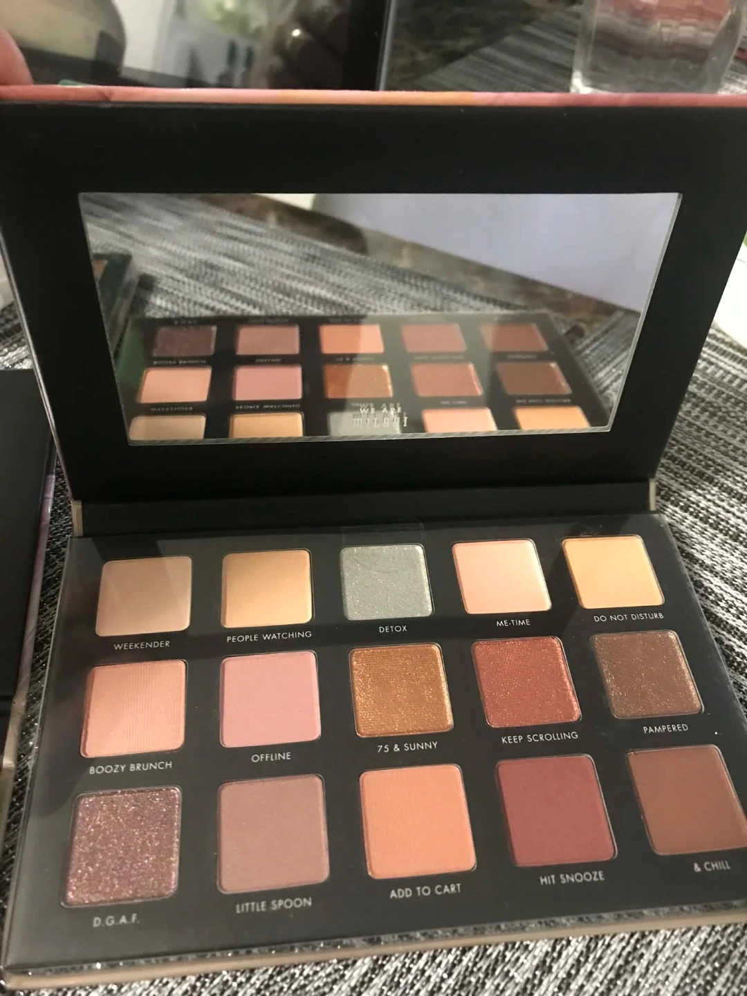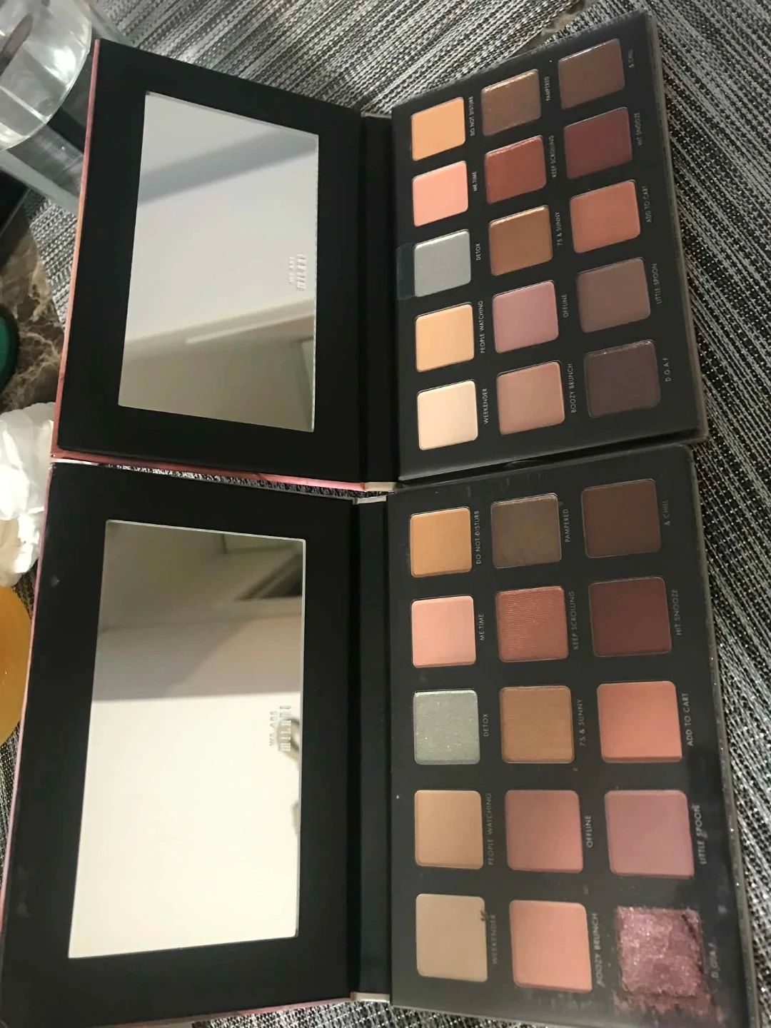 Two Milani Gilded Nude hyper-pigmented eyeshadow palettes. Each palette contains 15 shades of mattes and shimmers in rosy pinks and chocolatey browns. Each eyeshadow palette has a net weight of 0.22 oz / 9 g total. One color has a bit damage