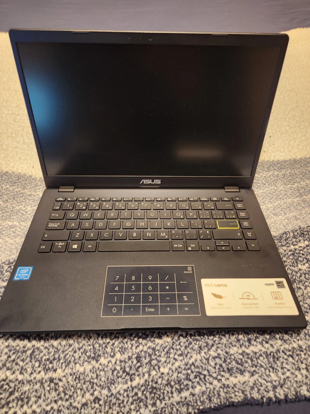Only 8 months old and rarely used! ASUS laptop with Intel Core i3 processor. It's lightweight and has a 180-degree hinge. HDMI output included.