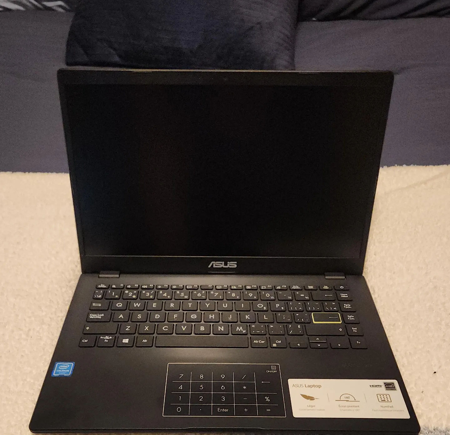 Only 8 months old and rarely used! ASUS laptop with Intel Core i3 processor. It's lightweight and has a 180-degree hinge. HDMI output included.
