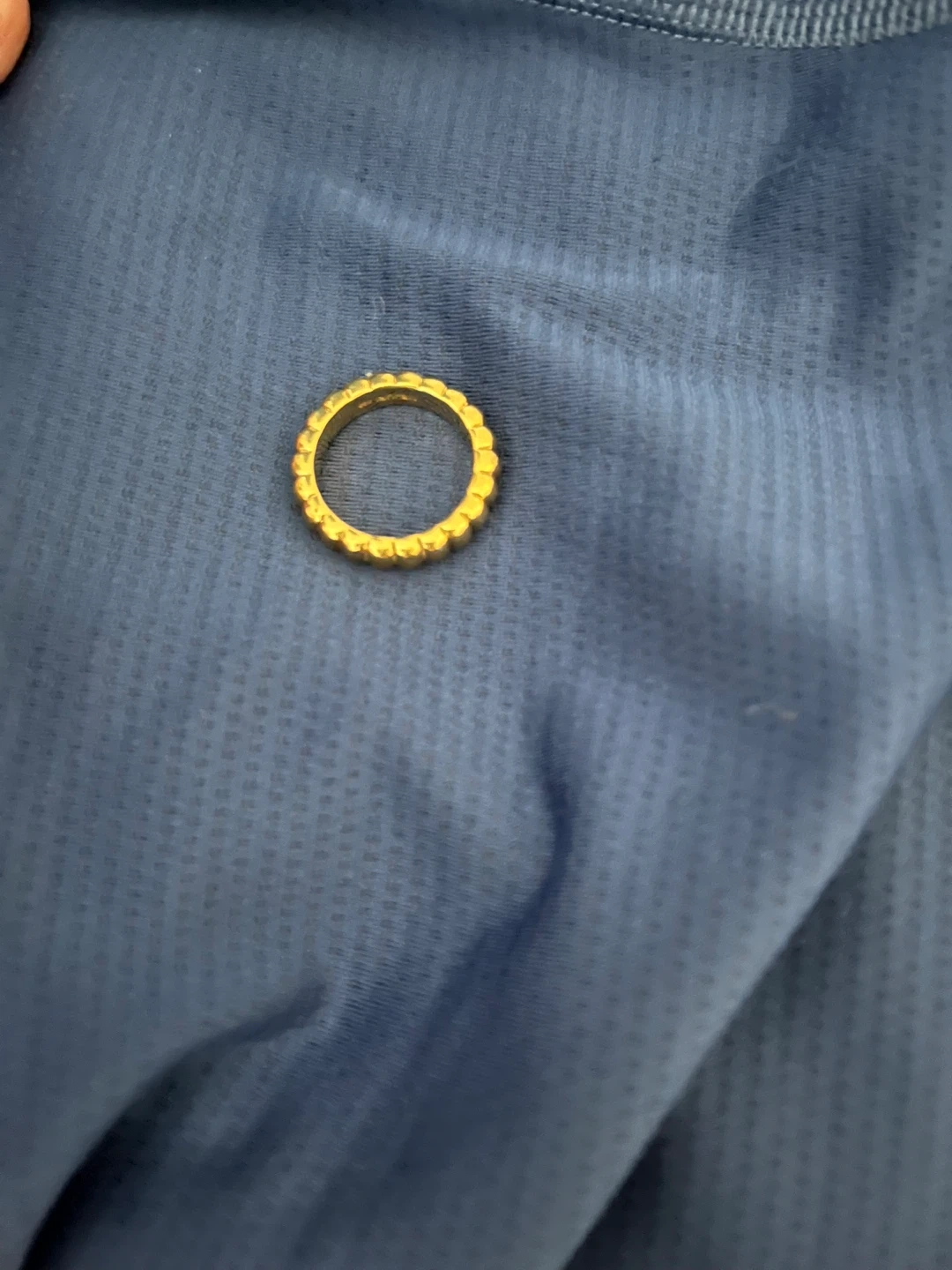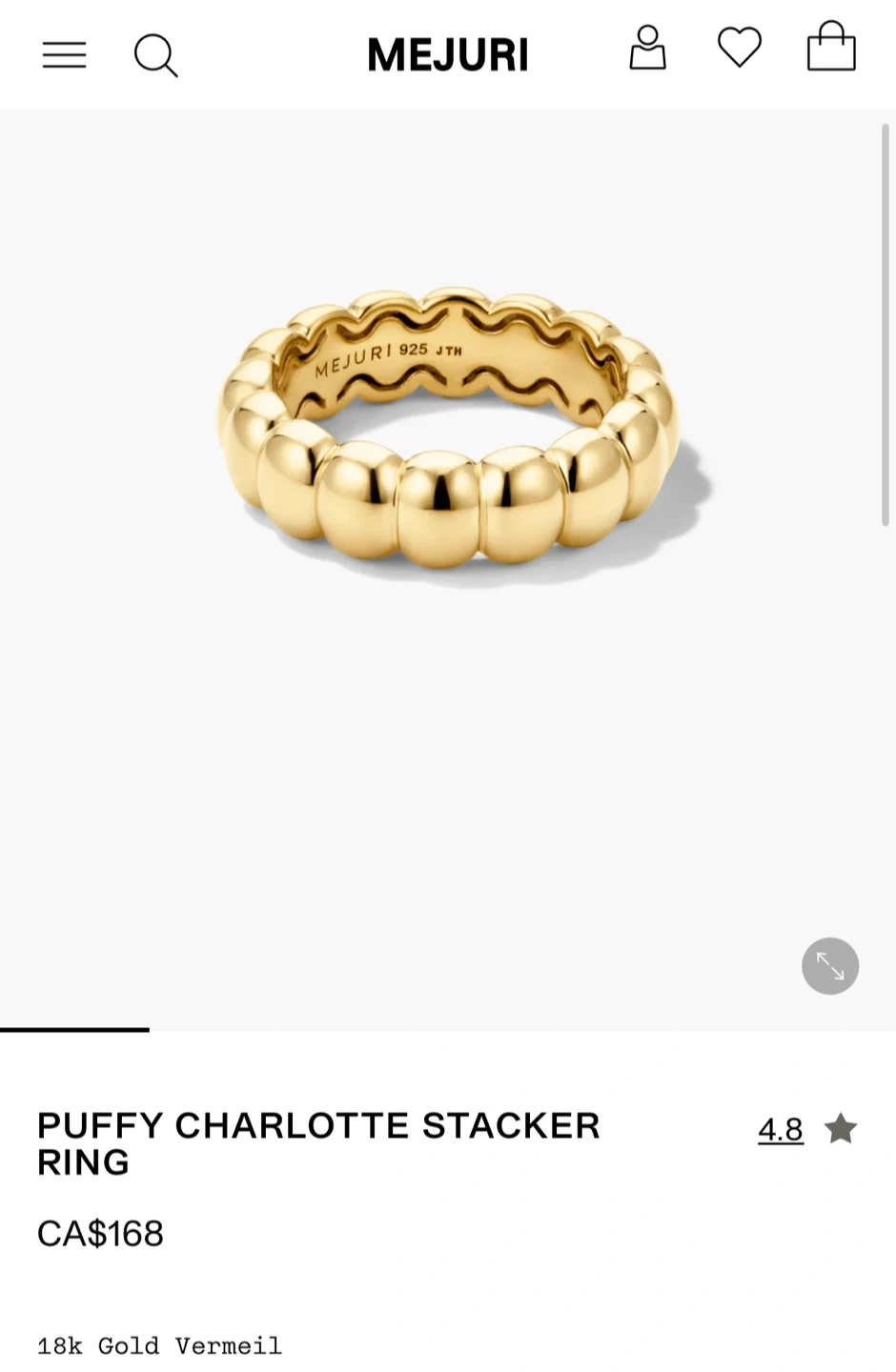 This Mejuri ring is crafted from 18k gold vermeil. It's a size 7.5 and is perfect for stacking or wearing on its own. A great addition to any jewellery collection!
