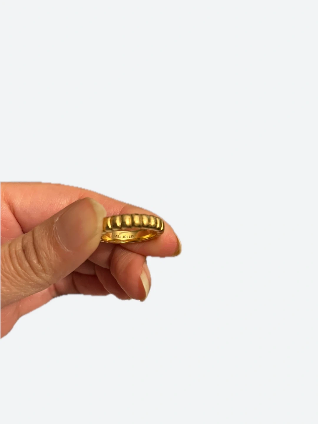 This Mejuri ring is crafted from 18k gold vermeil. It's a size 7.5 and is perfect for stacking or wearing on its own. A great addition to any jewellery collection!