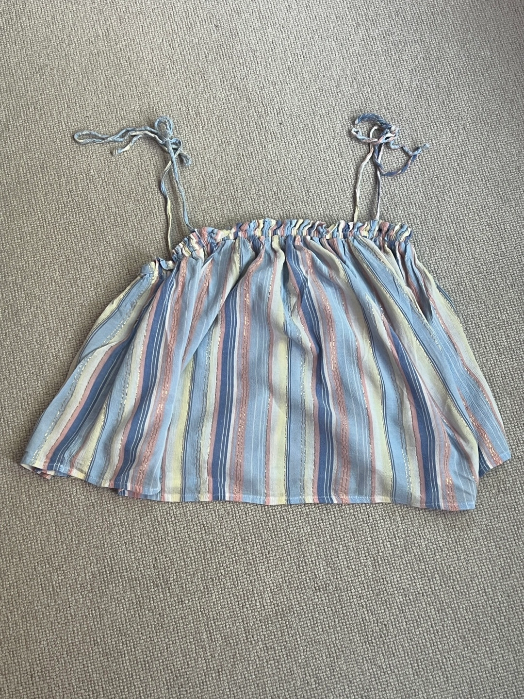 Cute striped tank top in a mix of blue, pink yellow and a touch of gold. It's in great condition (worn once) and ready for a new home. Perfect for sunny days or layering 😎☀️☀️