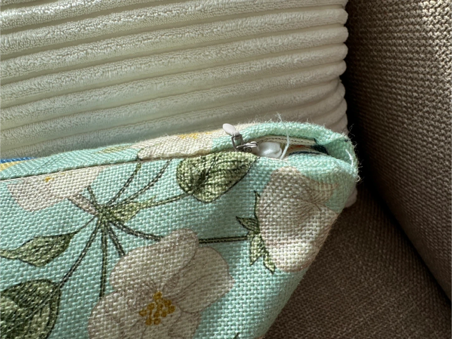 Flower/bird pattern has small unstitching-can be hidden by zipper.