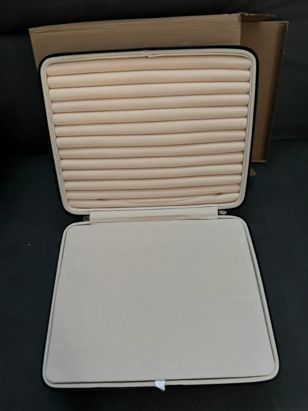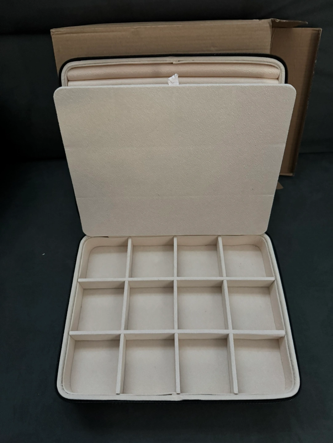 Brand new jewelry case, portable design. Features ring rolls and multiple compartments for earrings, necklaces, and other jewelry. Perfect for travel or storage.