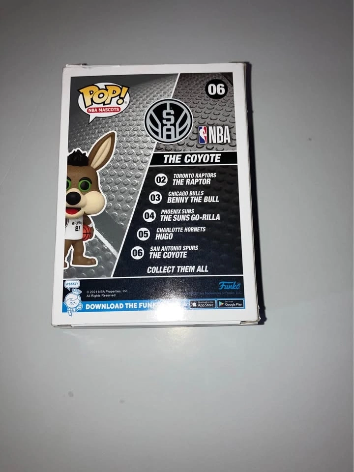 Buy & SellFunko Pop NBA Mascots 06 San Antonio Spurs The CoyoteFunko Pop NBA Mascots 06 San Antonio Spurs The Coyote$30NBA Mascots 06 San Antonio Spurs The Coyote Funko Pop still in original box. Price is firm.WHERE TO MEETCheck LocationView MapSELLERFrankYorkdale201 review0 chats·0 favorites·2 viewsSEND CHAT TO SELLERHi Frank! I’m interested in your listing.Hi Frank! I’m interested in your listing.Get the Karrot app to chatSign In to chat