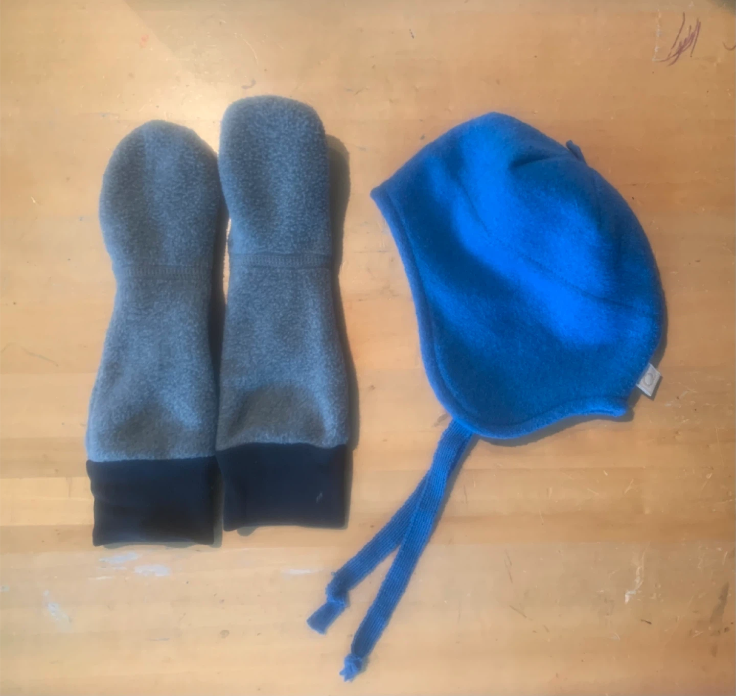 A cozy set for your little one! Includes a Disana wool hat in blue (size D 2 / US 0-19.5 in) and a pair of MEC socks in grey and black in XS. Pick up at Eglinton Ave east at Bayview.