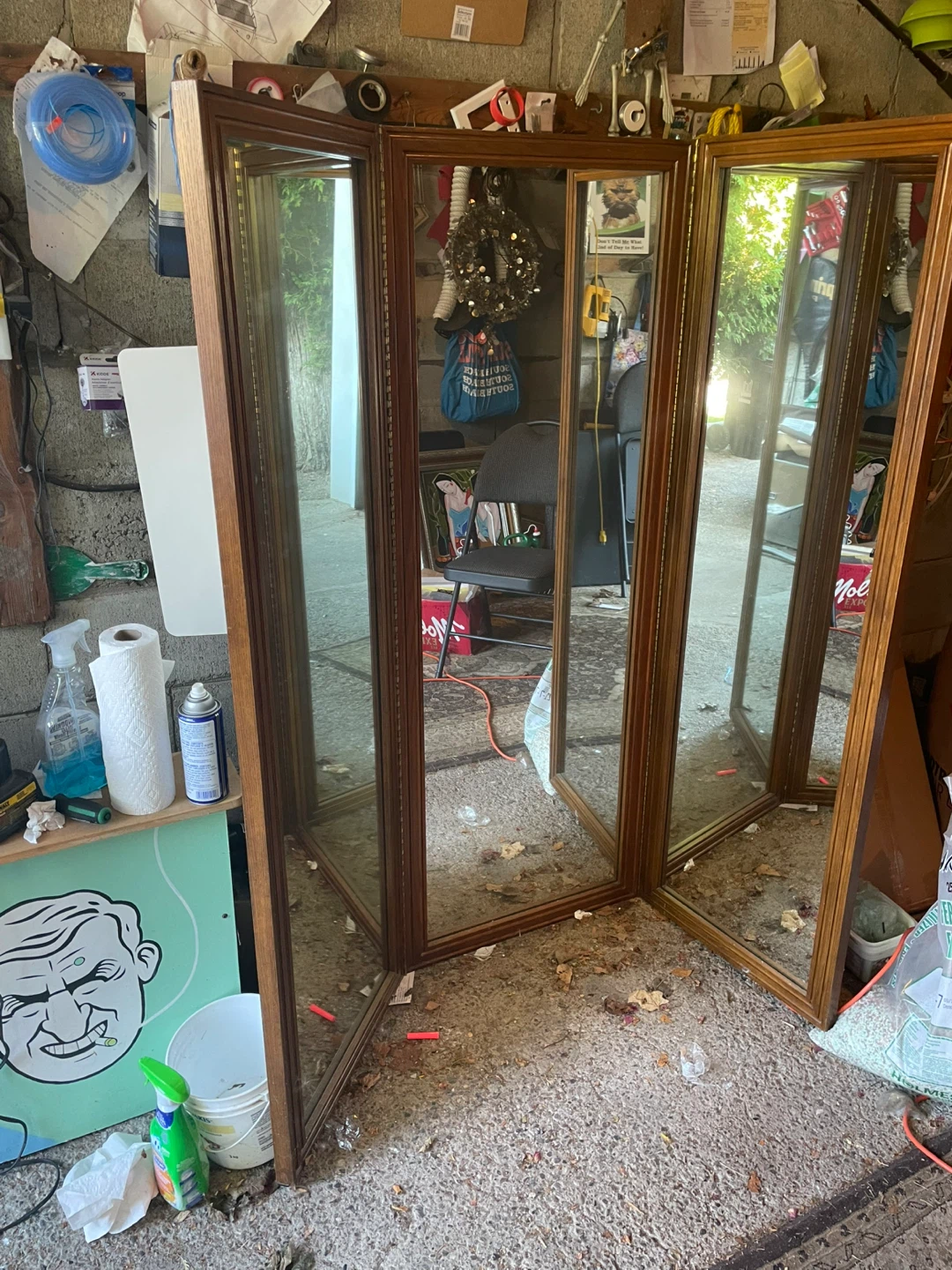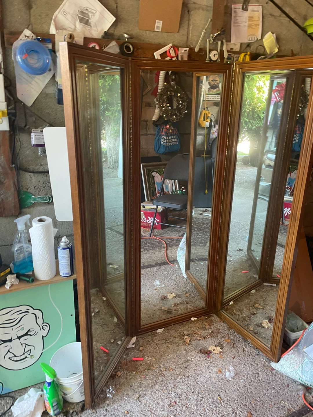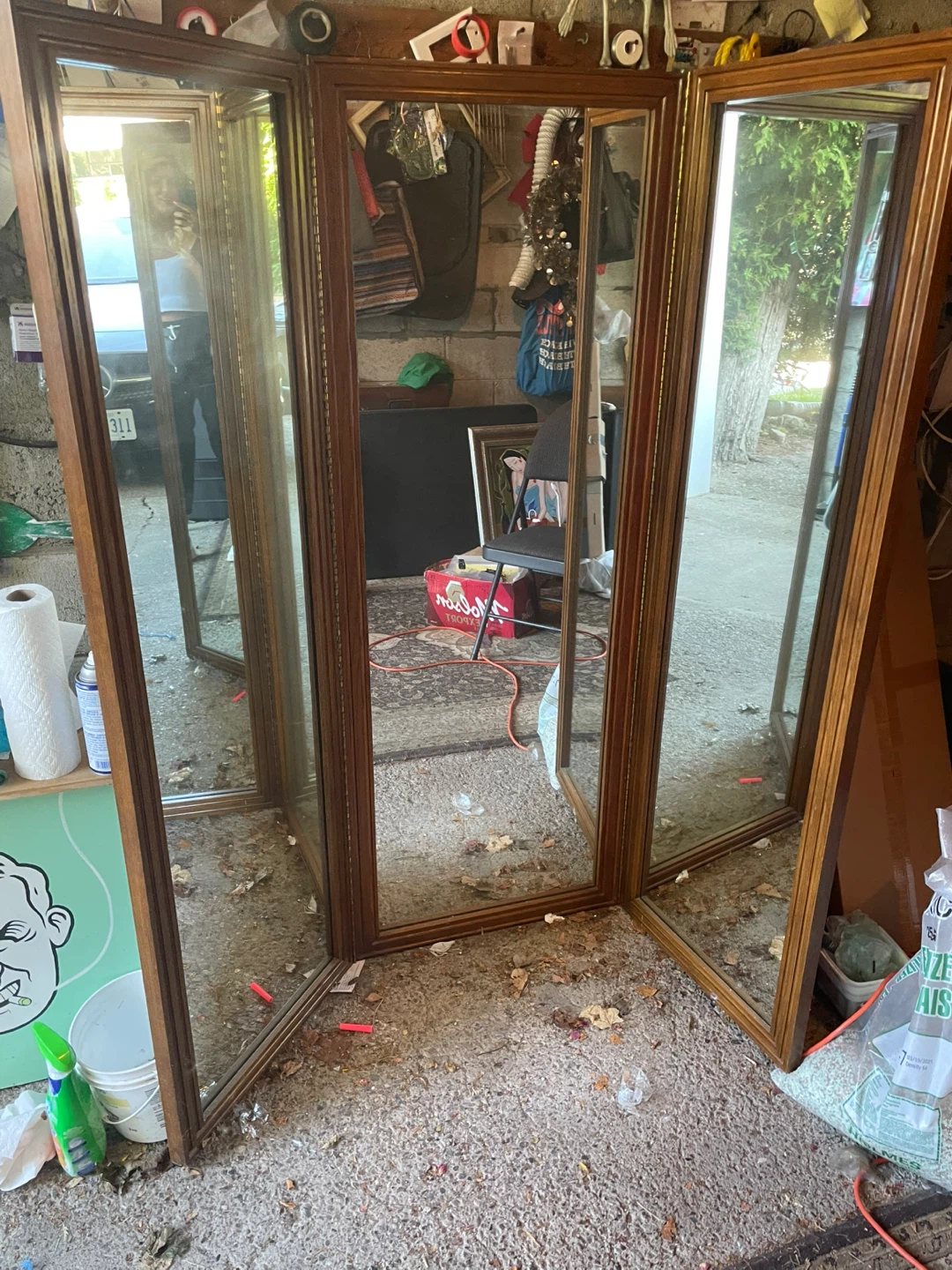 Selling a beautiful tri-fold vanity mirror! It's perfect for adding a touch of elegance to your dressing area or bedroom. The mirror is in good condition and ready to find a new home.