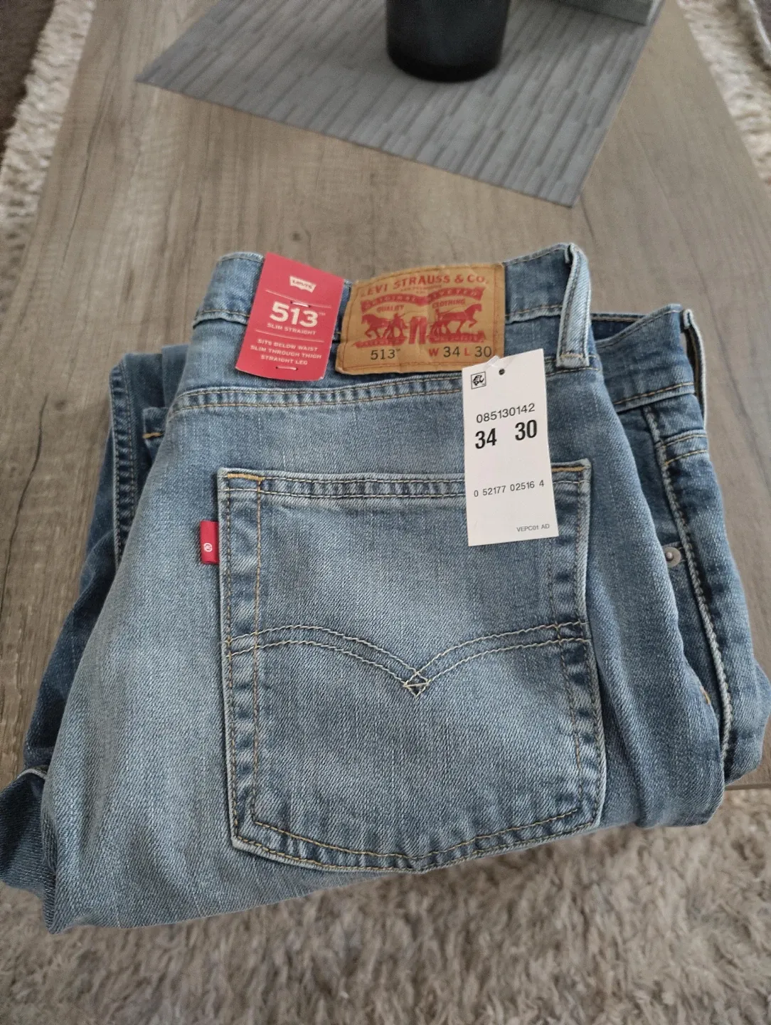 Levi's 513 Slim Straight jeans. Sits below the waist with a slim fit through the thigh and a straight leg opening. Size is W34 L30. Denim material. New with tags . Classic red tabs