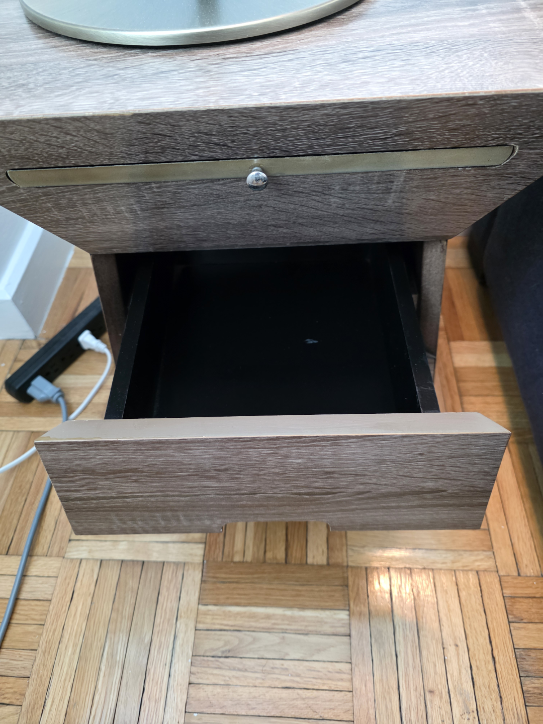 Selling a lightly used wooden accent table from Southern Enterprises! In great condition, has a drawer for storage, and a pull out tray for convenience.