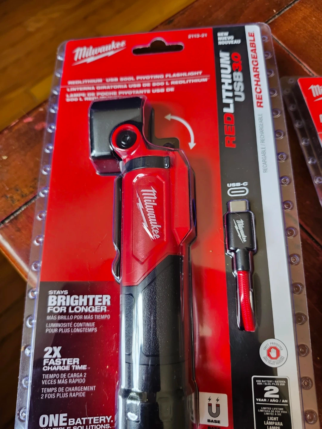 This is a new Milwaukee REDLITHIUM USB 3.0 pivoting flashlight. It stays brighter for longer and has 2x faster charge time. It's part of the ONE KEY system for battery solutions. USB-C rechargeable.