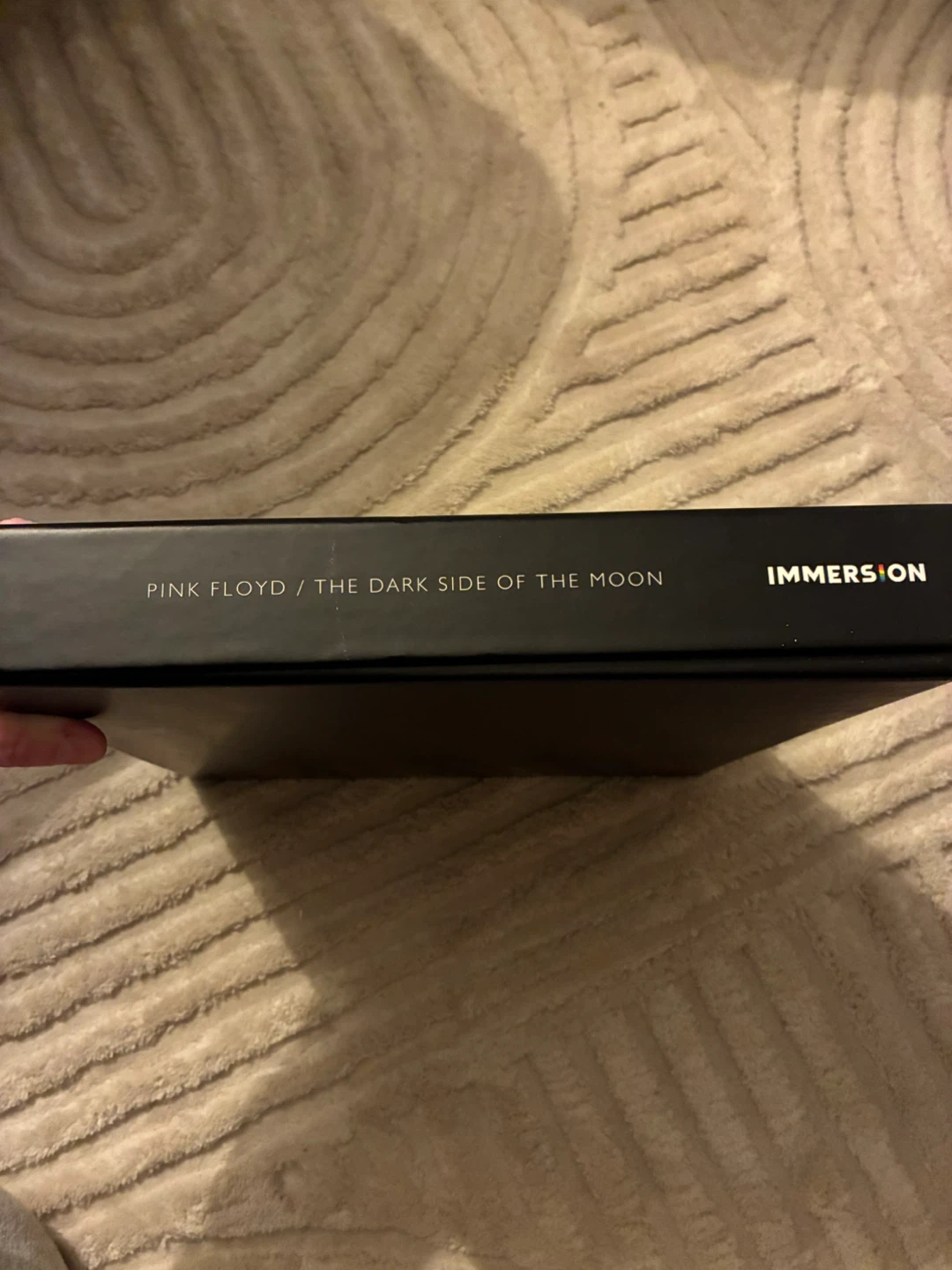 This is the Pink Floyd The Dark Side of the Moon Immersion Box Set. It includes the original box, multiple CDs, collectors cards, coasters, and other accessories. It's a collector's edition for fans of the iconic album.