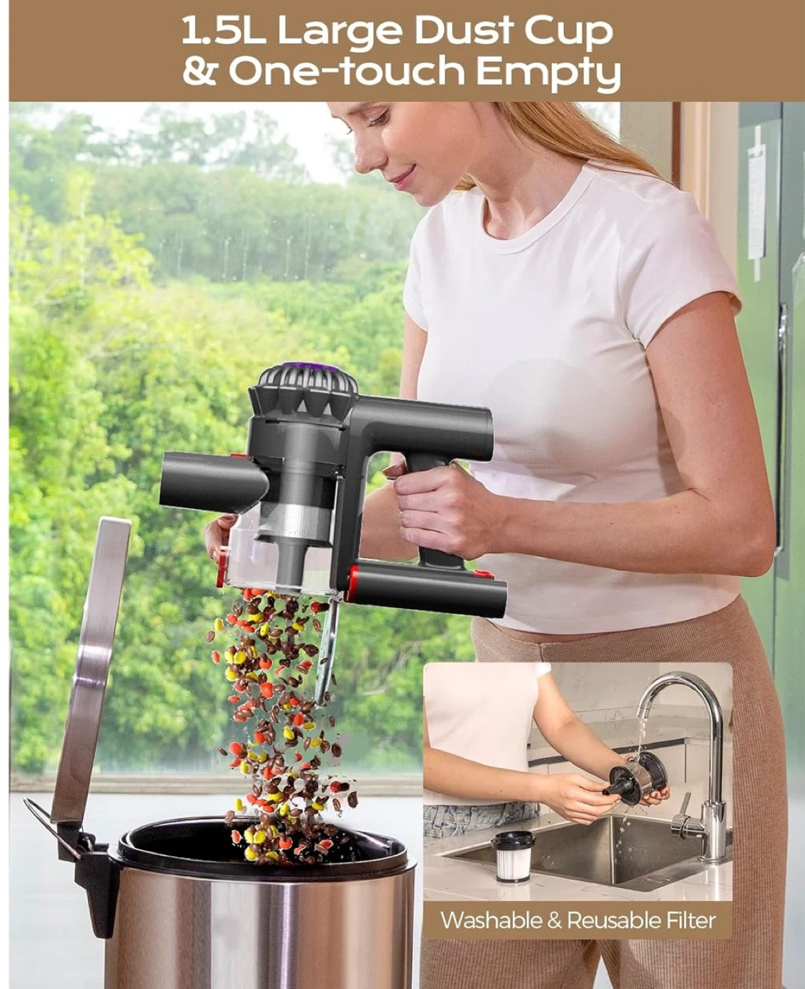 Min Runtime, Rechargeable Battery Vacuum for Carpet,Pet Hair,Hardwood Floor