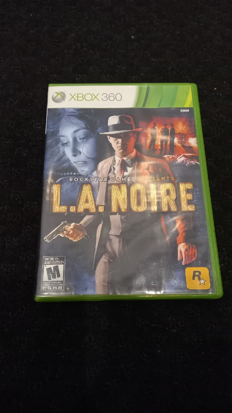 Selling L.A. Noire for the Xbox 360! A dark and violent crime thriller set against the backdrop of 1940's Los Angeles. Immerse yourself in the groundbreaking action of chases and shootouts to interrogations and clue-finding as Detective Cole Phelps in a corrupt city!