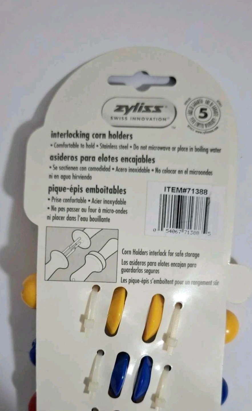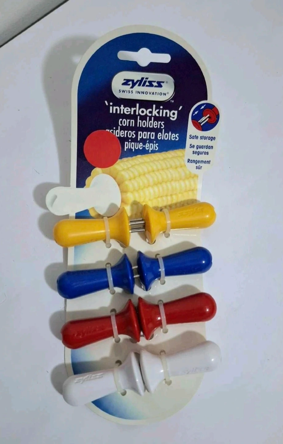 These are perfect for enjoying corn on the cob without getting your hands messy. The package includes four pairs of colourful corn holders (red, blue, yellow, and white). They are stainless steel and comfortable to hold. Plus, they interlock for safe and easy storage.